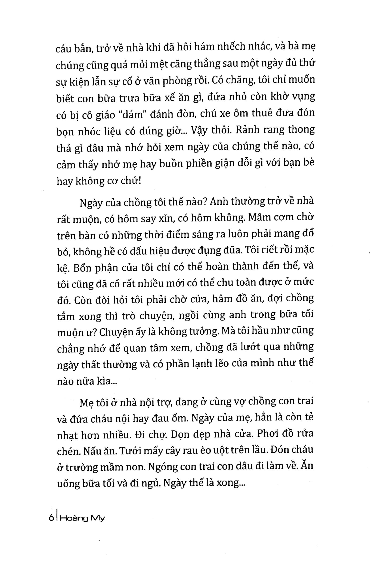 Không còn bé mọn gì có chút gì, mới chợt thấm thía rằng mồ côi Ở tuổi nào thì cũng đáng thương như nhau. Tôi đọc lại một số bài ngắn trong NHÀ LÚC ĐÔNG LÚC VẮNG. Ngậm thương tất cả những người mồ hôi trên đời này, Bỗng muốn nhắn nhủ rằng, ta hãy cố gắng để những ngày bên nhau dưới một mái nha thật nhiều ấm êm, sum vầy nhất. Ta hãy bớt những cáu gắt đành hanh bận bịu để lắng nghe người thân yêu của mình với sự kiên nhẫn dịu dàng nhất có thể Mong rằng những trang viết của tôi có thể chạm đôi chút vào tâm hồn nhạy cảm và tinh tế của bạn
