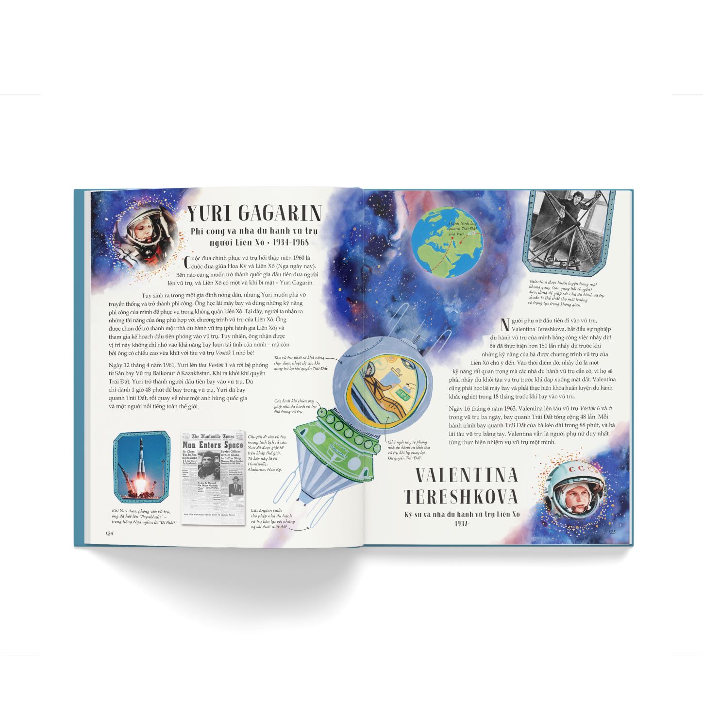 - Phát hành: 12/2022 Nội dung: “Tôi đã vui sướng rộn ràng khi nghe nói về các kế hoạch của cuốn sách này: vinh danh các nhà thám hiểm, và tôi tự hào vì được đóng góp một phần trong đây. Sau rốt, nhiều cuộc đời và câu chuyện trong cuốn sách này là cảm hứng cho những chuyến thám hiểm của riêng tôi. Nhà thám hiểm nghĩa là gì? Dù là trèo non vượt bể hay bay vào vũ trụ, điểm chung mà họ đều có là gì? Đó là lòng hiếu kỳ mạnh mẽ, khát khao khám phá và đam mê thách thức những giới hạn của trí lực, thể lực cũng như thế giới quanh ta. Sự can đảm và kiên trì cũng góp phần không nhỏ trong câu chuyện của mỗi nhà thám hiểm. Chắc chắn mỗi nhà thám hiểm đều đối diện với những hoài nghi – đôi khi là hoài nghi của chính họ, và đôi khi là hoài nghi của người khác – những người có những quan điểm khác nhau về những điều khả dĩ. Và rồi cũng có những thất bại không thể lường trước và những trở ngại tưởng chừng không thể vượt qua đã xuất hiện trong mỗi hành trình. Bạn sẽ được đọc nhiều câu chuyện như vậy trong cuốn sách này, và thêm phần hứng thú. Nhưng điều nổi bật nhất ở các nhà thám hiểm xuất sắc nhất chính là quyết tâm, sự tự tin và nghị lực của họ. Họ bền chí. Họ không nản lòng! Hồi còn là một cô gái trẻ lớn lên ở Harlem, New York, Hoa Kỳ, tôi không hề biết rằng mình sẽ đặt chân đến Bắc Cực và Nam Cực ở cái tuổi ngoài 70, được nhìn gấu Bắc Cực ở môi trường sống tự nhiên của chúng, và đứng sững người trước phong cảnh băng tuyết bao la. Theo tháng năm, nhờ có giáo dục, trí tưởng tượng và được chắp cánh bởi những người thầy và người ủng hộ, giấc mơ của tôi đã đâm chồi nảy lộc – và tôi đã đạt được nó! Tương tự như vậy, các bạn – những người đang đọc cuốn sách này – có thể không biết chính cái cách mà bạn thách thức bản thân, vượt qua cái gọi là giới hạn, và tạo lập mối quan hệ độc đáo của riêng bạn với thế giới. Nhưng tôi khuyến khích các bạn khi đọc về câu chuyện của các nhà thám hiểm, hãy nghĩ xem: Giác quan khám phá của bạn sẽ đưa bạn đến đâu? Những thách thức nào bạn sẽ vấp phải? Bạn sẽ chuẩn bị như thế nào? Bạn có những phẩm chất nào bên mình? Và bạn sẽ định nghĩa thế nào về thành công của chính mình? Khám phá vui nhé”. - (Lời nói đầu do Barbara Hillary chấp bút) Nhà thám hiểm kể những câu chuyện đáng kinh ngạc về hơn 50 nhà du hành. Hãy gặp gỡ Vasco de Gama, người đầu tiên đi từ châu Âu đến Ấn Độ bằng đường biển; Nellie Bly, nữ phóng viên đi vòng quanh thế giới trong 72 ngày; và Barbara Hillary, người đã đặt chân đến Bắc Cực ở tuổi 75! Hãy sẵn sàng đặt chân đến những vùng đất chưa từng biết đến… Hãy dấn thân vào những rừng nhiệt đới ẩm ướt để tìm kiếm những ngôi đền bị lãng quên, chống chọi với sự lạnh giá ở Bắc Cực, và bay vào không gian! “Một cuốn sách tuyệt vời truyền cảm hứng cho thế hệ các nhà thám hiểm tiếp theo” - Sir Ranulph Fiennes