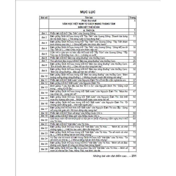 Văn học Việt Nam từ Cách mạng tháng Tám 1945 đến cuối thế kỉ XX gồm có: Thơ ca: 50 bài; Truyện, kí, kịch: 39 bài Văn nghị luận: