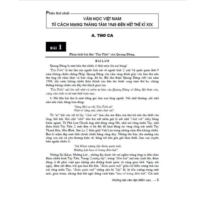 110 bài thơ văn đặc sắc, chọn lọc Các em cần đọc trên tinh thần khám phá và sáng tạo, liên kết và hệ thống các cụm bài văn theo từng tác phẩm cụ thể, từng tác giả cụ thể. Các bài thơ cần học thuộc lòng; các truyện cần được tóm tắt cốt truyện; có thế mới thu được nhiều kết quả tốt đẹp. Hi vọng cuốn sách “Những bài văn đạt điểm cao của học sinh giỏi 12”này sẽ trở thành người bạn thân thiết, quý mến của các em học sinh gần xa; là tài liệu, tư liệu đáng tin cậy giúp các em tự đọc, tự học và ôn tập để chuẩn bị tốt cho kì thi THPT Quốc Gia sắp tới