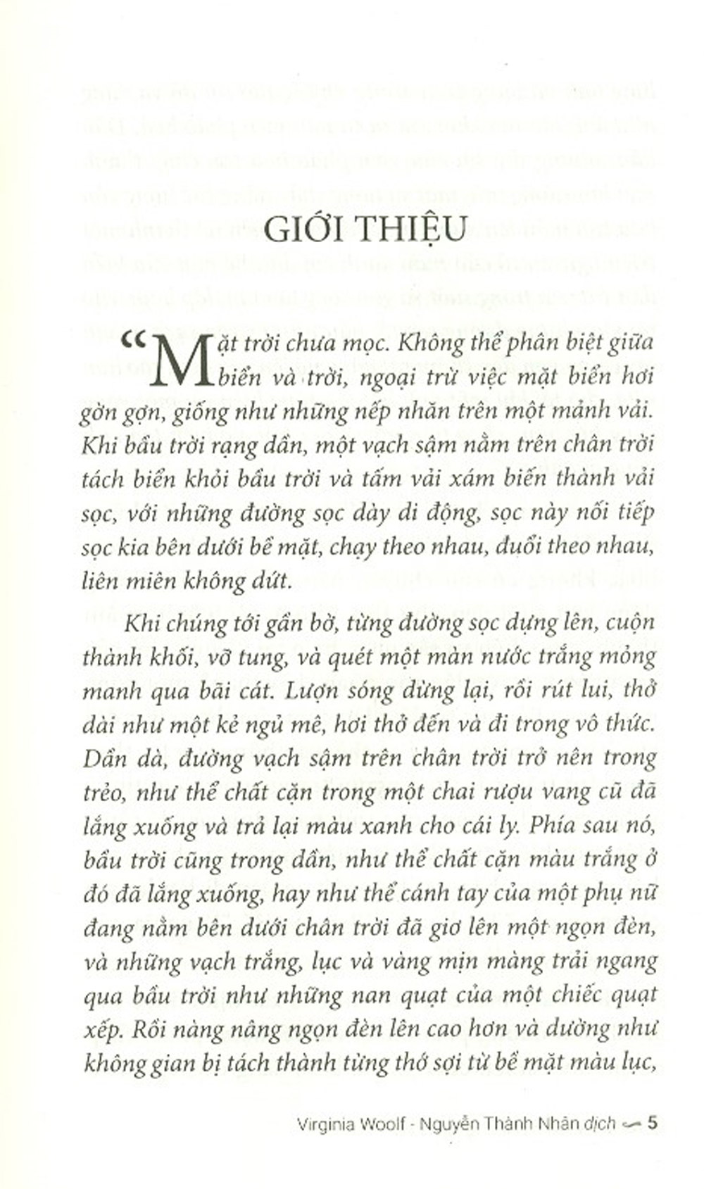 "Những lớp sóng" của Virginia Woolf là triều dâng của đời sống, triều dâng của một thứ ngôn từ nghệ thuật ngoại hạng mà dường như chỉ có một thiên tài như nàng, người tạo ra những bước sóng lạ thường ...