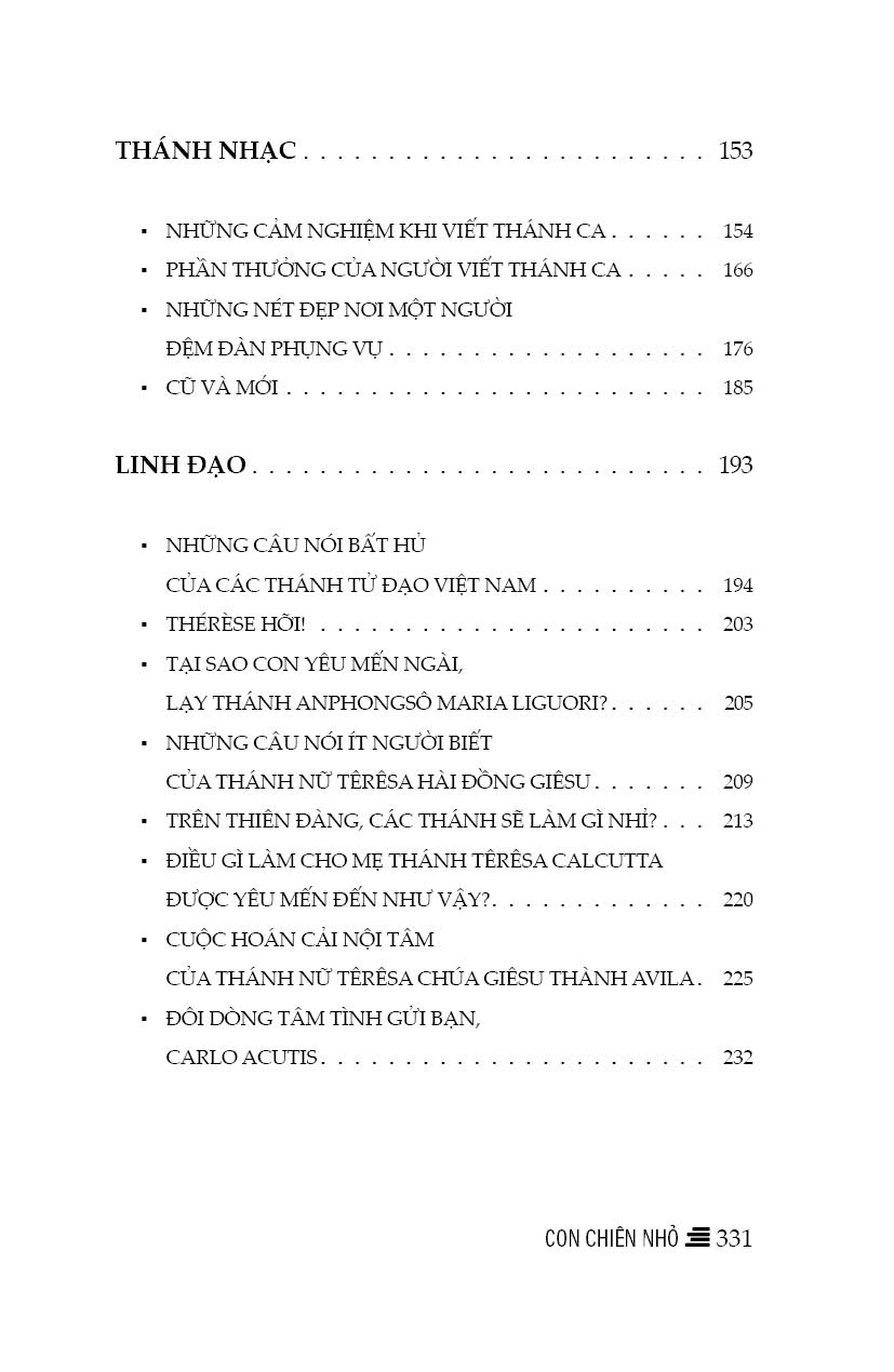Cách đặc biệt, xin cám ơn cha Khắc Đỗ, người anh em đồng môn nay cũng đã là Linh mục của Chúa, đã nhẫn nại nghiền ngẫm những suy tư đơn thành này và chia sẻ đôi lời tâm tình. Và hết sức trân trọng, con xin chân thành ghi ơn Đức cha Giuse Bùi Công Trác, cha Bề trên - Giám đốc Đại Chủng Viện Thánh Giuse Sài Gòn đã cho con những dòng khích lệ rất quý giá. Con đưa bản thảo đầu tiên cho ngài lúc con là phó tế chuẩn bị chịu chức Linh mục và lúc ấy cha Bề trên Giuse chưa lãnh nhận chức thánh Giám mục, nhưng vì yêu thương con nên dù rất bận bịu với công việc chung, ngài vẫn dành thời giờ xem qua và khích lệ con trong công việc nhỏ bé này. Cách chung, xin cám ơn tất cả những ai đã đóng góp cách này cách khác để quyển sách này ra đời.