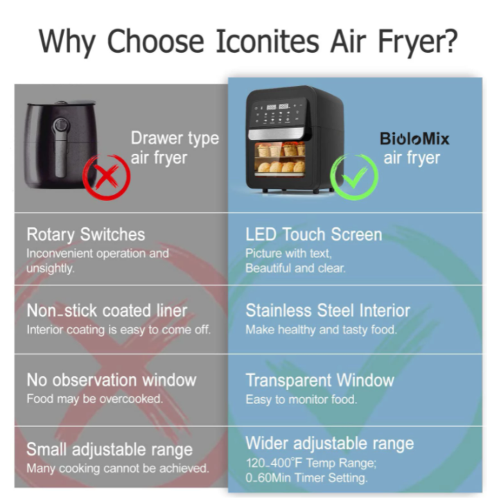 Bạn nghĩ gì về cách chiên truyền thống? ngon nhưng không tốt cho sức khỏe? Bây giờ, nồi chiên không khí BioloMix 7L mới sắp ra mắt. Nồi chiên không khí mạnh mẽ này sử dụng công nghệ tuần hoàn nhiệt 360 ° tiên tiến, có được món ăn giòn ngon và lành mạnh hơn với ít hoặc không cần dầu.