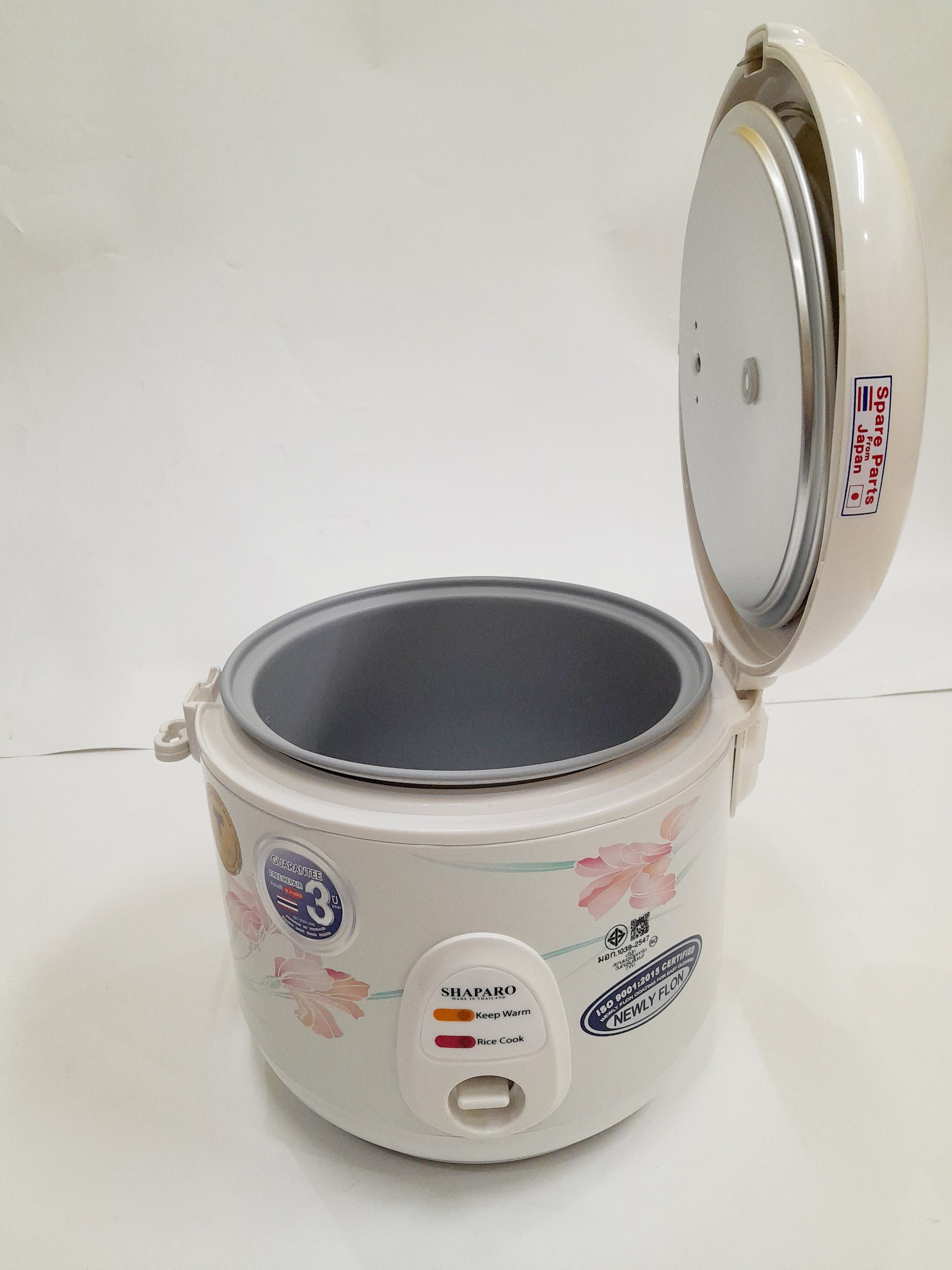 - Nồi cơm điện hiệu Shaparo Lồng nồi tráng men chống dính Vỏ nồi thiết kế hoa văn sang trọng Dung tích 1.8L Màu sắc: trắng Thùng 4 cái Linh kiện của Nhật Bản * Sản xuất tại Thái Lan