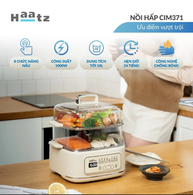 ✨Nồi Hấp Đa Năng 2 Tầng Haatz CIM371, Dung Tích 10L, 8 Chức Năng, 1000W - Hàng Chính Hãng