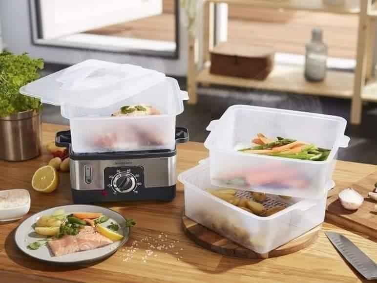– Nồi hấp 3 tầng Silvercrest dùng để hấp chín thức ăn như: thịt, cá, rau, củ, cơm, gà, yến sào, trứng, … đảm bảo giữ nguyên hàm lượng vitamin và protein trong thực phẩm, rất tốt cho sức khoẻ.