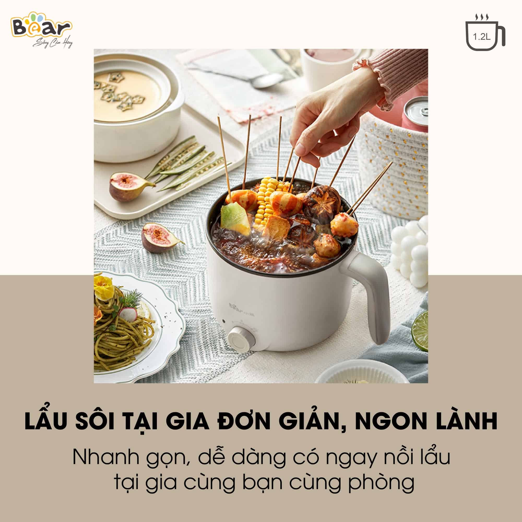 2.1. Dung tích nhỏ gọn Nếu bạn đang cần tìm 1 chiếc nồi cho cuộc sống độc thân, hay dễ dàng mang đi du lịch khắp mọi nơi, thì nồi lẩu mini đa năng Bear