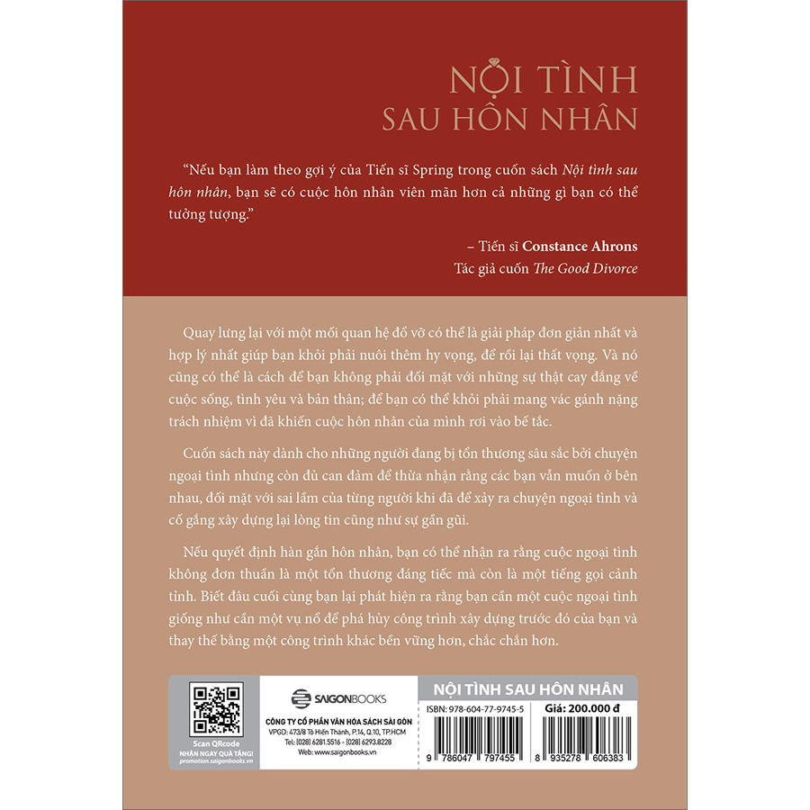 Và dù bạn có là ai trong mối quan hệ này, Nội tình sau hôn nhân vẫn là một cẩm nang tinh tế và đầy hy vọng để chữa lành nỗi đau. Ngoài việc tăng thêm góc nhìn một cách thấu đáo về ngoại tình, đây sẽ là một công cụ quan trọng để xây dựng lại mối quan hệ sau khi một người đã ngoại tình.
