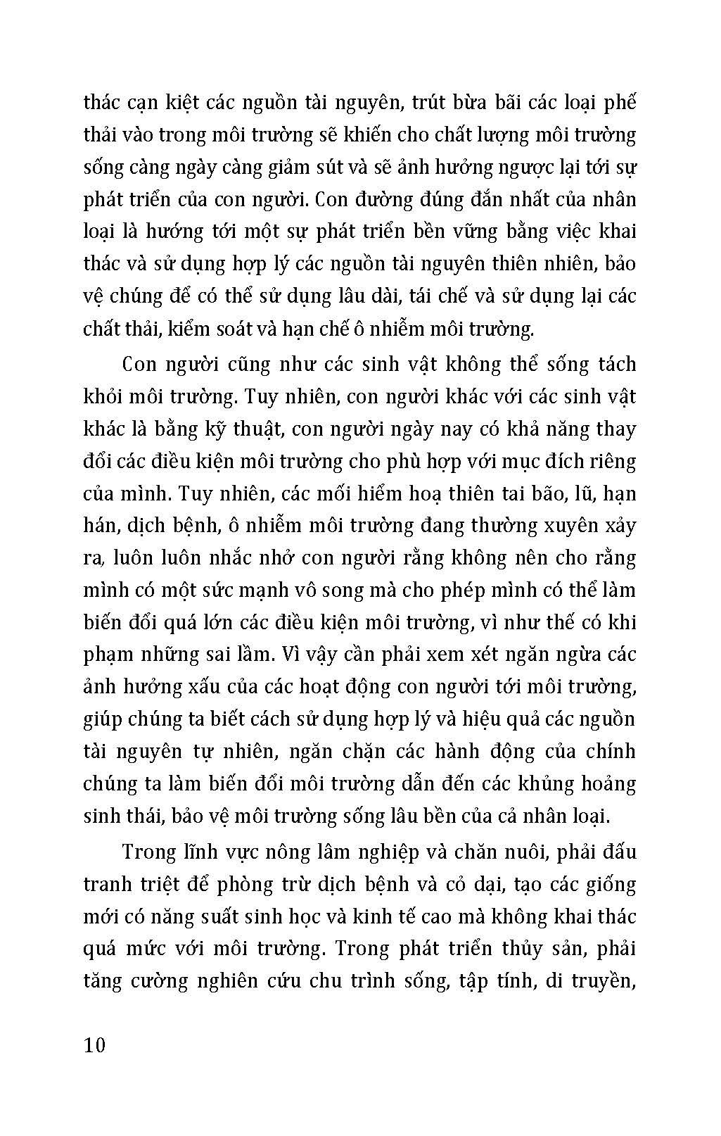 Đề cập vấn đề quan trọng và cấp thiết của nhân loại trong quá trình sống và phát triển - Bảo vệ môi trường - thông qua việc phân tích các yếu tố về con người và môi trường, nước và tạo nguồn nước sạch, phân rác và việc xử lý, diệt côn trùng, vệ sinh ở nông thôn, công nghệ sinh học trong xử lý nước và rác thải, sử dụng và bảo quản thuốc bảo vệ thực vật, góp phần xây dựng cuộc sống sạch và xanh