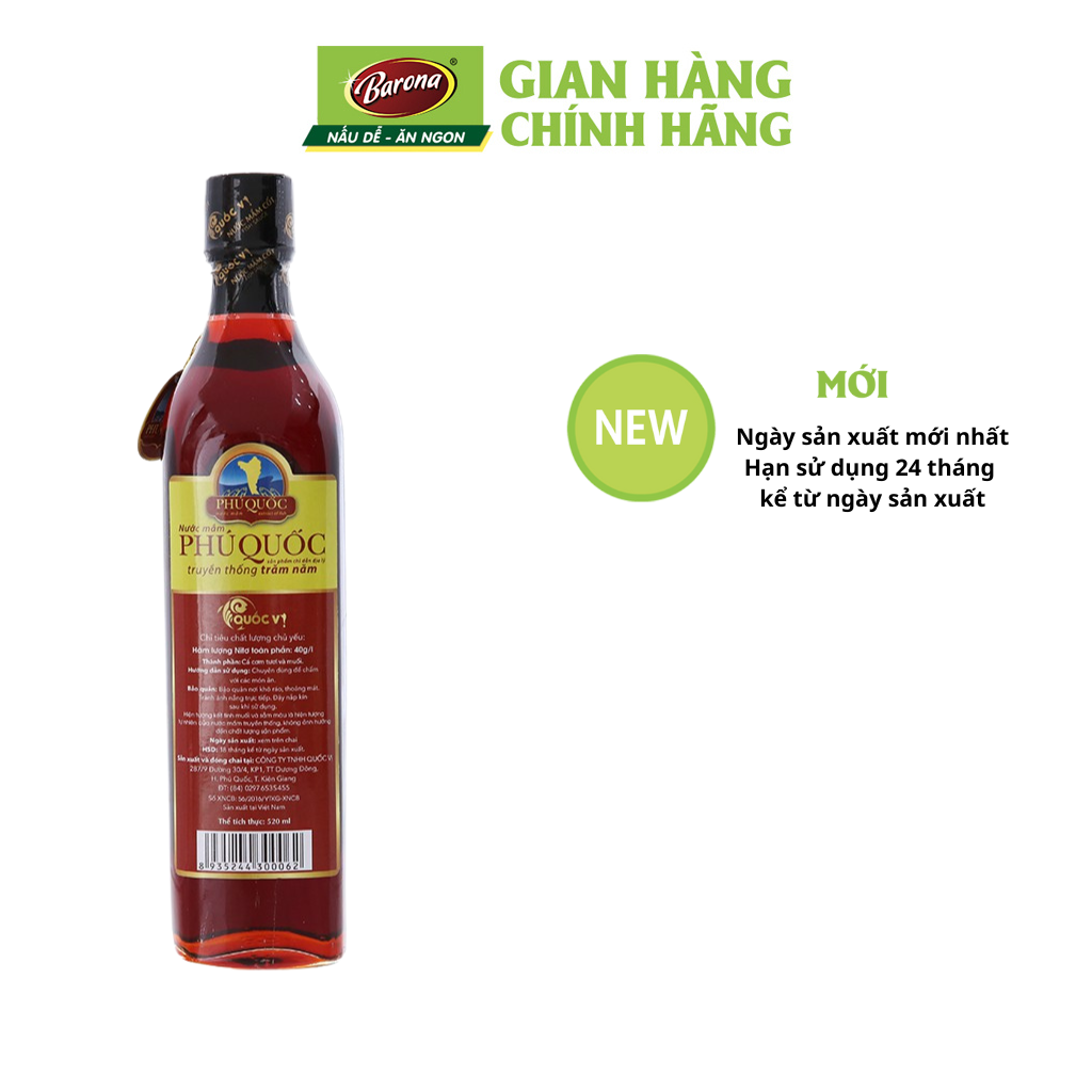 - Kiểu dáng chai sang trọng, cao cấp Trọng lượng/dung tích : 520ml Cách dùng : dùng để chấm, ướp, nêm nếm khi nấu món ăn hằng ngày Hạn sử dụng : 24 tháng từ ngày sản xuất Xuất xứ : Phú Quốc, Kiên Giang, Việt Nam