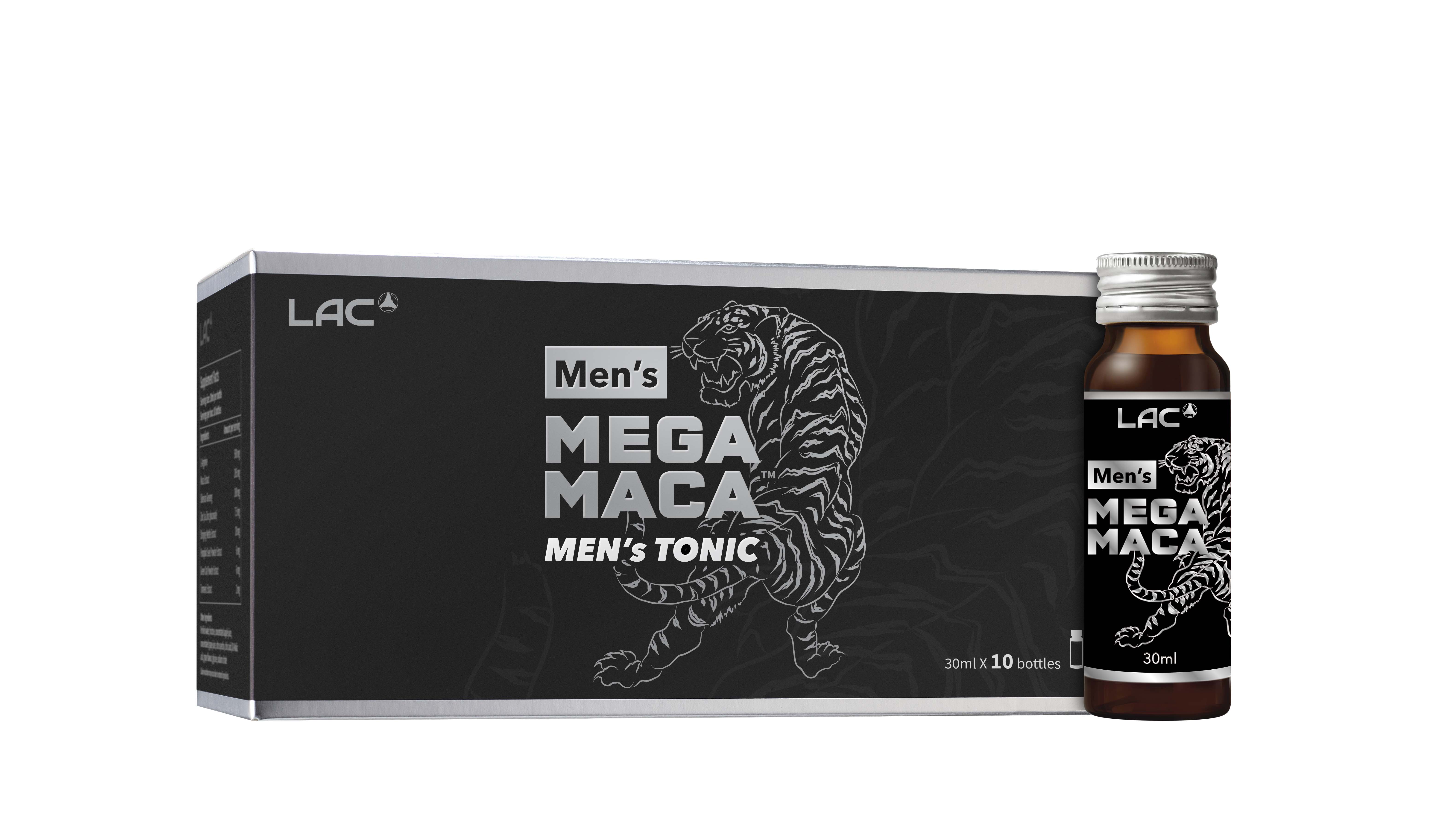 NƯỚC UỐNG TĂNG CƯỜNG SỨC KHỎE, SINH LỰC VÀ THỂ TRẠNG DÀNH CHO NAM GIỚI LAC MEN'S MEGA MACA (30ML X 10 CHAI) là sản phẩm bổ trợ sức khỏe dành cho nam giới -
