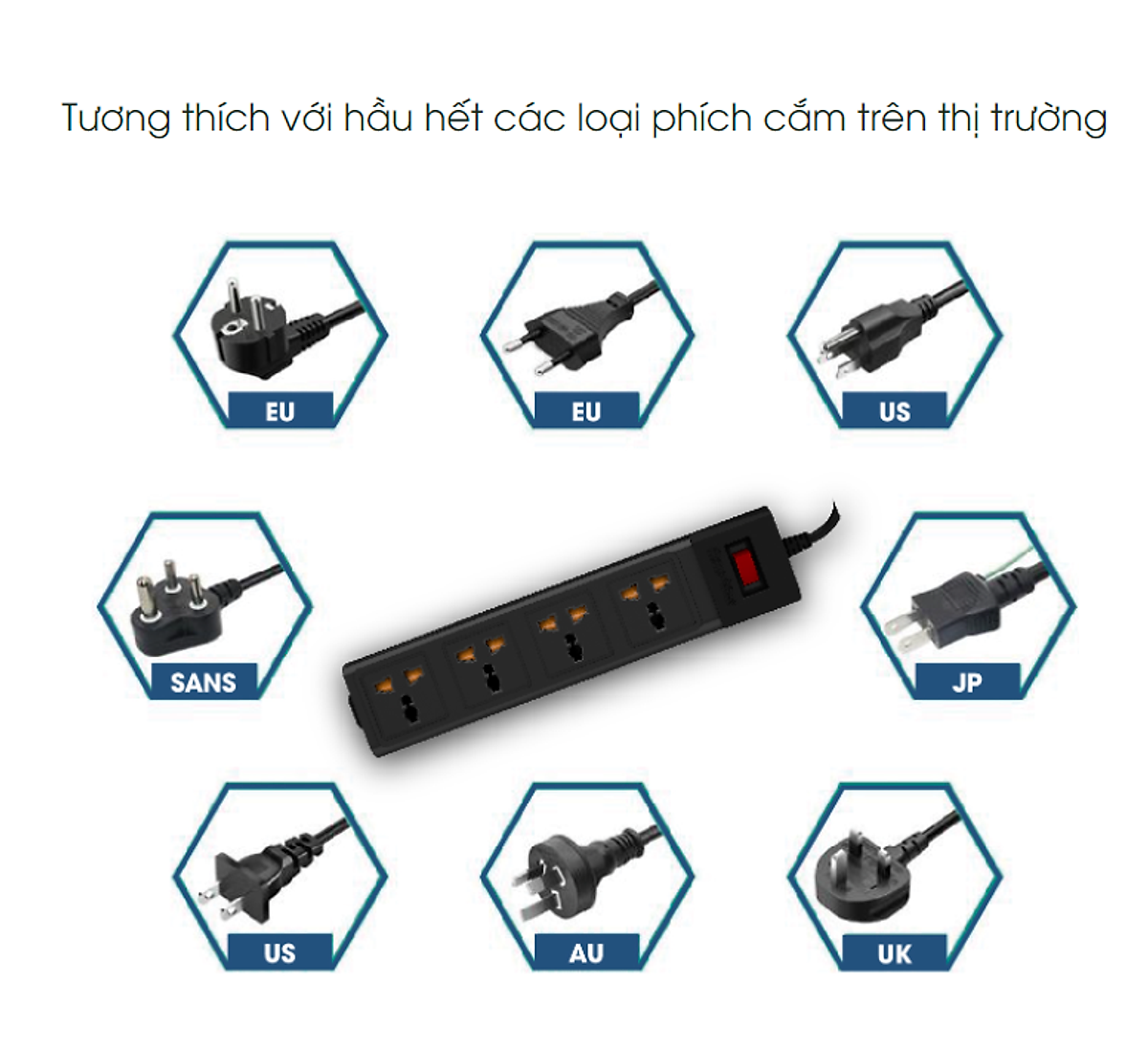 - Ổ cắm đa năng sử dụng đồng chuyên dụng siêu đàn hồi.