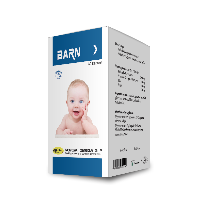 - glycerol, antioksidant,blandede tokoferoler. Công dụng: Giúp bổ sung Acid béo không no (DHA, EPA, Omega 3) cho cơ thể, hỗ trợ phát triển não bộ và thị giác cho trẻ. Đối tượng và liều dùng Sản phẩm Norsk BARN Mùi vị Fish oil Đối tượng Phụ nữ mang thai, phụ nữ đang cho con bú (uống cho mẹ tốt cho con) Liều dùng