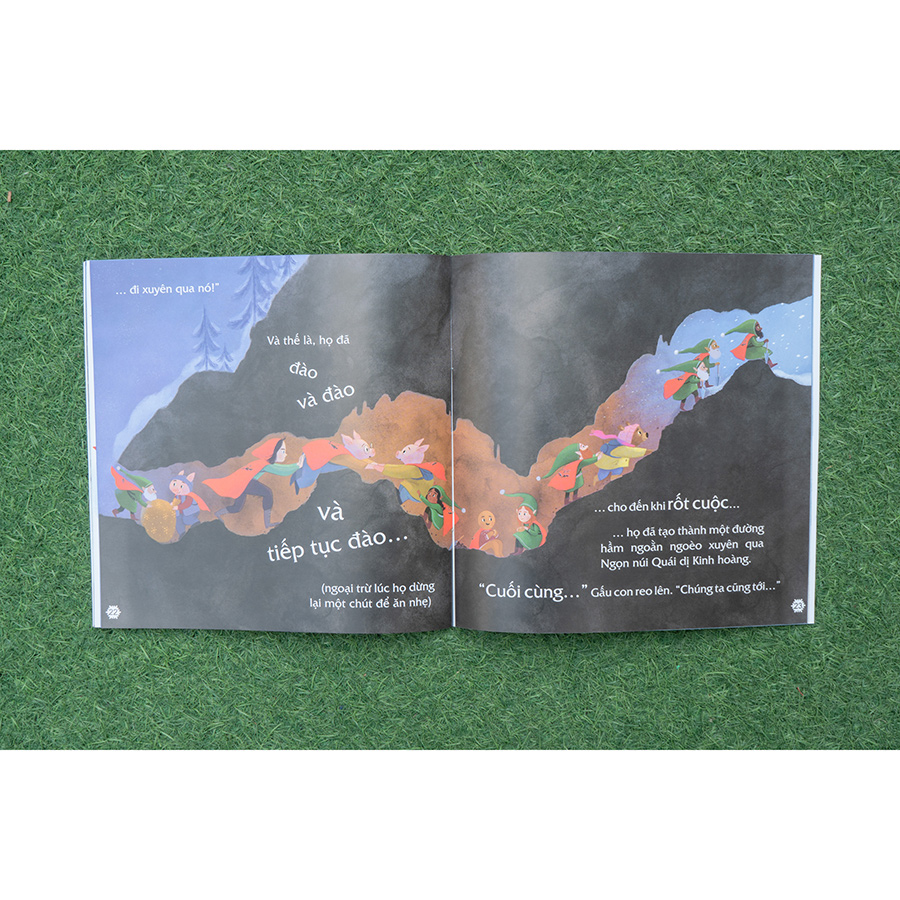 Mọi người ngay lập tức lên đường, vượt qua Dòng sông Chảy xiết Gầm gừ, Khu rừng Tối đen Như mực, Ngọn núi Quái dị Kinh hoàng để đến được Ngôi làng Bên ngoài Ranh giới. Ôi, chuyến hành trình của các bạn ấy sẽ gặp phải những trở ngại gì nhỉ? Chúng mình hãy cùng theo chân Gấu con và Biệt đội Giải cứu Cổ tích đi giúp Ông già Noel thôi nào.