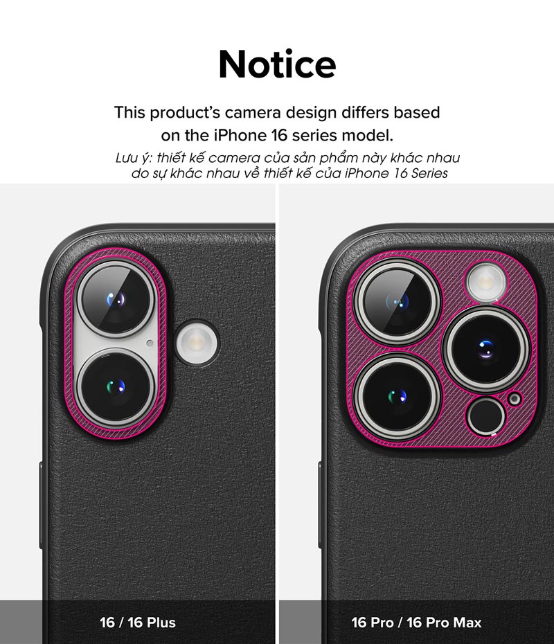 - Do thiết kế phần camera của iPhone 16/16 Plus khác với iPhone 16 Pro/16 Pro Max nên dòng ốp Onyx cũng có sự khác nhau ở vị trí camera. Với dòng máy iPhone 16 Pro/16 Pro Max, phần camera được thiết kế cụm nguyên khối, trong khi dòng máy iPhone 16/16 Plus thì phần camera khoét lỗ. Hình ảnh sản phẩm