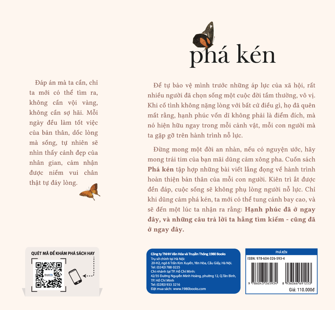 Cuốn sách Phá kéntập hợp những bài viết lắng đọng của tác giả Tiểu Dã về hành trình thấu hiểu và hoàn thiện bản thân của mỗi con người. Tất thảy mọi điều đều bắt đầu từ việc nuôi dưỡng nội tâm mạnh mẽ, để ý thức được rằng, cuộc sống sẽ không phụ lòng người nỗ lực. Hãy cứ mong muốn sống một cuộc đời cao quý hơn, vượt trên những điều tầm thường chán ngán. Sự cao quý ấy không đến từ vật chất, với nhà lầu xe hơi, với tiền tài danh vọng… Sự cao quý đích thực được xây đắp, tích lũy từng chút một từ tận đáy lòng, biểu hiện ở việc thấu hiểu bản thân, học cách trân trọng chính mình, có dũng khí sống độc lập và tự tạo ra niềm vui, học cách rung động trước những điều nhỏ bé giản dị…