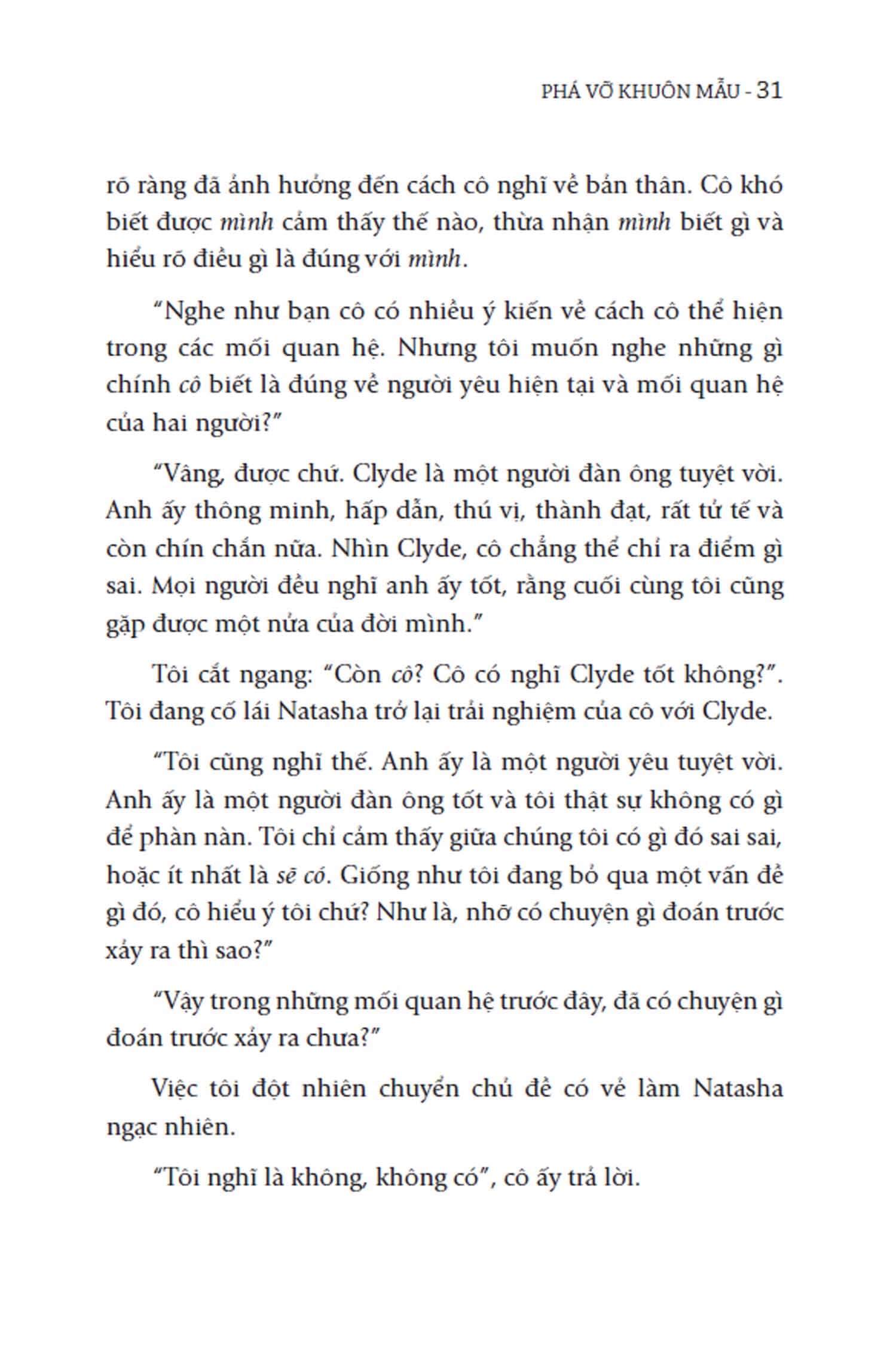 1. Sống và yêu một cách chân thật Theo Vienna, sự chân thật chính là nền tảng của hạnh phúc. Chỉ khi dám là chính mình, chúng ta mới có thể cảm nhận tình yêu, kết nối và tự do sống đúng với giá trị bản thân. Ai nên đọc cuốn Phá Vỡ Khuôn Mẫu?
