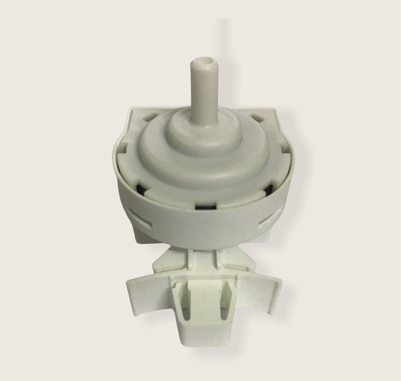- Phao áp lực có chức năng cảm biến mức nước trong lồng giặt để báo về mạch điều khiển. Phao áp lực thông thường có 3 chân, 1 lỗ ống áp. Phía trên có ốc điều chỉnh áp.