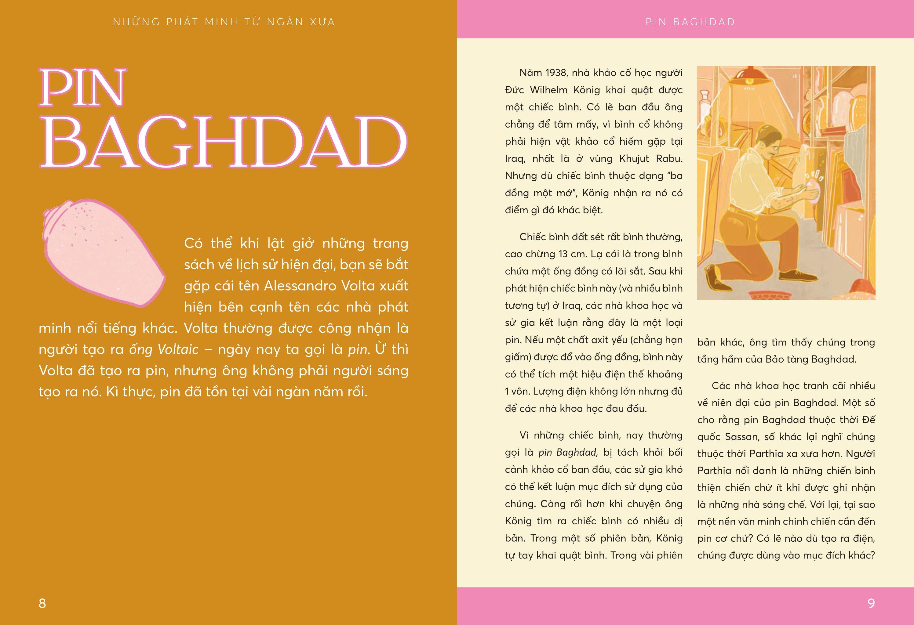 Phát Minh Năm Châu Xưa Và Nay Tại sao vài nhà phát minh nổi tiếng hơn những người khác? Vì đâu khó xác định “cha đẻ” của một sáng chế? Kĩ thuật in thay đổi thế giới, nhưng do nguyên cớ gì mà người xưa cảm thấy cần phải tạo ra nó? Khi đào sâu tìm hiểu lịch sử sáng chế và cách thức lĩnh vực này định hình thế giới tự cổ chí kim, bạn sẽ thấy đáp án cho những câu hỏi trên, và còn hơn thế nữa. Hãy vào vai một nhà phiêu lưu hiếu kì, lật mở những trang sách để khám phá nhiều chuyện hay ho về những sáng chế và người tạo ra chúng!