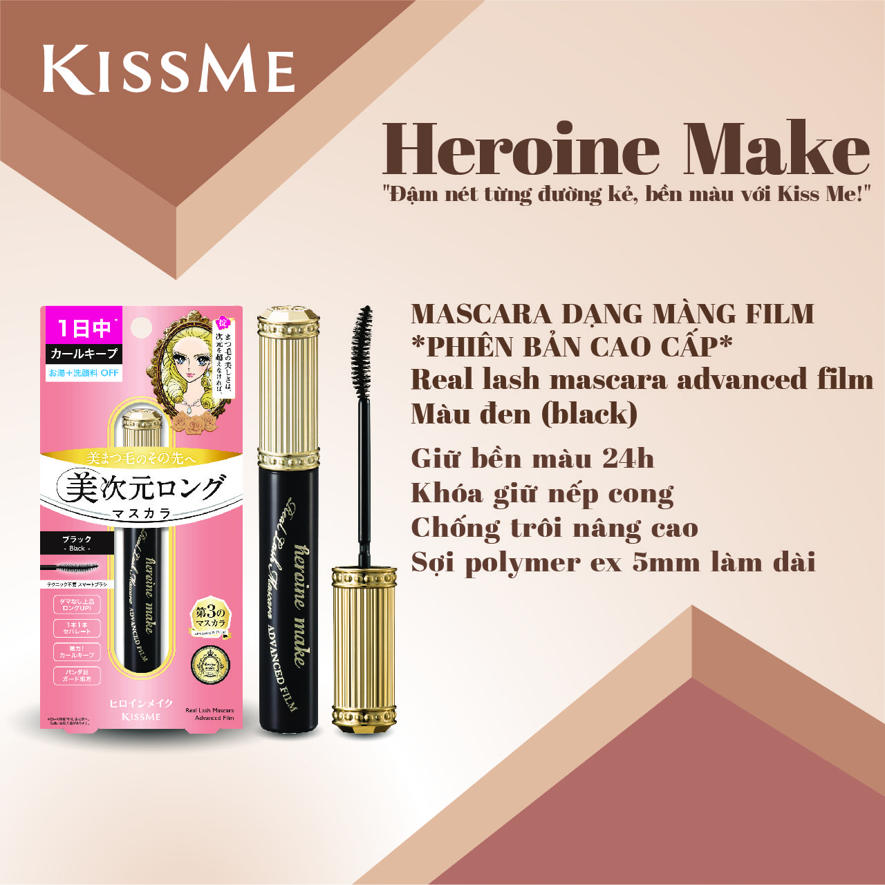 MASCARA MÀNG FILM CẢI TIẾN KISSME HEROINE MAKE SIÊU CHỐNG TRÔI LÀM CONG VÀ DÀI MI – BẢN GIỚI HẠN (MÀU ĐEN TRO) PHIÊN BẢN HOÀNG GIA KISSME HEROINE MAKE REAL LASH MASCARA ADVANCED FILM