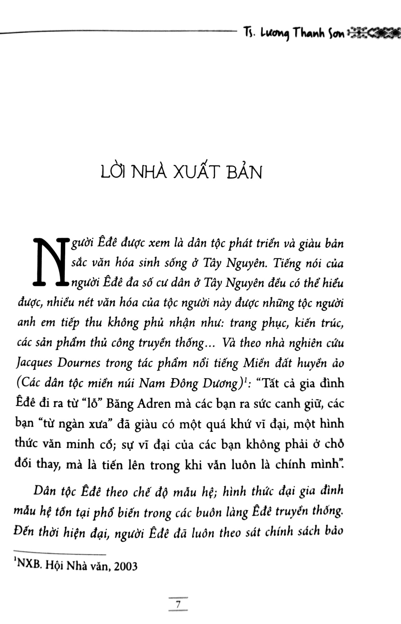 Phụ Nữ Êđê Trong Xã Hội Mẫu Hệ Đã từ rất lâu, người Êđê có mặt ở khắp miền Trung Tây Nguyên, và chủ yếu là ở tỉnh Đăk Lắk. Nguồn gốc dân tộc xuất phát từ nhóm Mã Lai, và được in dấu qua các trang sử thi. Và Tây Nguyên là vùng đất nổi tiếng bởi vẻ đẹp đặc trưng của miền cao nguyên, bởi văn hóa đậm đà bản sắc dân tộc. Nổi bật nhất là chế độ mẫu hệ của người Êđê. Đặc trưng chế độ mẫu hệ trong xã hội truyền thống của dân tộc Êđê thể hiện ở nhiều khía cạnh trong cuộc sống, từ quan hệ gia đình, xã hội đến cả các kiến trúc nhà ở, nhạc cụ cồng chiê Trong đó, nét đặc trưng nhất là chế độ mẫu hệ thể hiện trong cuộc sống hôn nhân gia đình người Êđê. Để tìm hiểu thêm về vấn đề này, Thư viện tỉnh Vĩnh Long trân trọng giới thiệu đến bạn đọc quyển sách Phụ nữ Êđê trong xã hội mẫu hệ của tác giả Lương Thanh Sơn do nhà xuất bản Phụ nữ Việt Nam phát hành năm 2022. Sách được chia làm 05 chương: Chương 1: Tổng quan Giới thiệu đến bạn đọc một số khái niệm liên quan như: Phụ nữ, Hôn nhân, Gia đình, Chế độ mẫu quyền, Mẫu hệ… và nguồn gốc lịch sử các vấn đề nghiên cứu về người Êđê ở Tây Nguyên. Chương 2: Đặc trưng mẫu hệ Êđê Dân tộc Êđê là một trong 54 dân tộc anh em trong đại gia đình các dân tộc Việt Nam. Họ sống tập trung ở Đắk Lắk. Đặc điểm quan trọng đầu tiên ở các tộc người theo chế độ mẫu hệ nói chung và người Êđê nói riêng là quan hệ huyết thống và quan hệ thừa kế đều được tính theo dòng họ mẹ. Theo đó, chế độ mẫu hệ quy định người phụ nữ lớn tuổi nhất là người làm chủ gia đình, đưa ra mọi quyết định trong gia đình, các thành viên trong gia đình kể cả người chồng đều phải nghe theo. Con cái khi sinh ra theo họ của người mẹ. Khi lớn lên con gái được đi bắt chồng đưa về nhà m.ình. Khi cha mẹ già con gái chăm sóc, khi cha mẹ mất con gái được thừa hưởng tài sản… Tuy nhiên, vai trò của người đàn ông cũng được đánh giá cao, không có sự trọng nữ, khinh nam. Và đó cũng chính là nét đẹp văn hóa mẫu hệ Êđê còn được bảo tồn cho đến ngày nay. Chương 3: Phụ nữ Êđê với vai trò chủ gia đình Trong chương này, tác giả mang lại cho bạn đọc cái nhìn mới về gia đình của một số tộc người ở Tây Nguyên trước đây. Người có quyền lực cao nhất trong gia đình là phụ nữ. Người phụ nữ đóng vai trò trung tâm, tạo không khí vui vẻ về tinh thần và đảm bảo vật chất cho các thành viên trong gia đình. Người phụ nữ trong chế độ mẫu hệ giữ vai trò quan trọng và đầy quyền lực. Họ luôn được mọi người tôn kính và biết ơn. Ngoài ra, trong chương này còn giới thiệu đến bạn đọc nét kiến trúc độc đáo, biểu trưng cho chế độ mẫu hệ chính là Nhà dài - Nơi cư trú của đại gia đình mẫu hệ. Và hình tượng nhà dài từ xưa đã đi vào sử thi, truyện cổ như những trang huyền thoại. Nhà dài có hình dáng gần giống như chiếc thuyền, trên rộng dưới hẹp, gợi mở về lịch sử tổ tiên người Êđê từ xa xưa đã từng lênh đênh trên những chiếc thuyền đi tìm vùng đất cư ngụ. Nhà dài không chỉ là không gian sống mà còn là nơi gắn kết bao thế hệ dòng tộc của người Êđê, là văn hóa của tộc người Êđê. Chương 4: Phụ nữ Êđê với việc giữ gìn và phát huy bản sắc văn hóa tộc người Trong phần này, tác giả giới thiệu đến bạn đọc cộng đồng dân tộc Êđê Bih, một nhánh của người Êđê sinh sống tại Buôn Trấp, thị trấn Buôn Trấp, huyện Krông Ana, tỉnh Đắk Lắk, tộc người đã và đang góp phần giữ gìn linh hồn của tộc người m.ình, gìn giữ chế độ mẫu hệ qua nhiều hoạt động văn hóa. Chẳng hạn, toàn bộ hoạt động diễn tấu dàn chiêng đều do phụ nữ thực hiện và khi đánh chiêng đều phải mặc trang phục truyền thống của tộc người. Đây không chỉ là việc tôn trọng người phụ nữ mà còn biểu hiện của việc duy trì chế độ mẫu hệ. Hay người phụ nữ Êđê luôn cặm cụi bên khung cửi, tạo ra những tấm vải thổ cẩm với nhiều hoa văn độc đáo để bảo tồn nét đẹp của trang phục truyền thống. Mỗi sản phẩm thổ cẩm làm ra nói lên sự cần cù, khéo tay của người phụ nữ Êđê, đều mang nét đẹp của dân tộc. Ngoài ra, việc giữ gìn và phát huy bản sắc văn hóa dân tộc của phụ nữ Êđê còn được tác giả nhắc đến trong phần này là văn hóa ẩm thực. Qua đó, tác giả giới thiệu đến bạn đọc một số món ăn của người Êđê. Chương 5: Hình tượng Phụ nữ Êđê qua một số tác phẩm văn học dân gian Ở chương này, tác giả giới thiệu đến bạn đọc Hình tượng phụ nữ Êđê qua Klei duê (Lời nói vần), Hình tượng phụ nữ Êđê qua Klei dưm (Truyện cổ) và Hình tượng phụ nữ Êđê và xã hội mẫu hệ qua khan (Sử thi). Trong đó, với những giá trị lịch sử, văn hóa, khoa học đặc sắc, Khan (Sử thi) của người Êđê đ