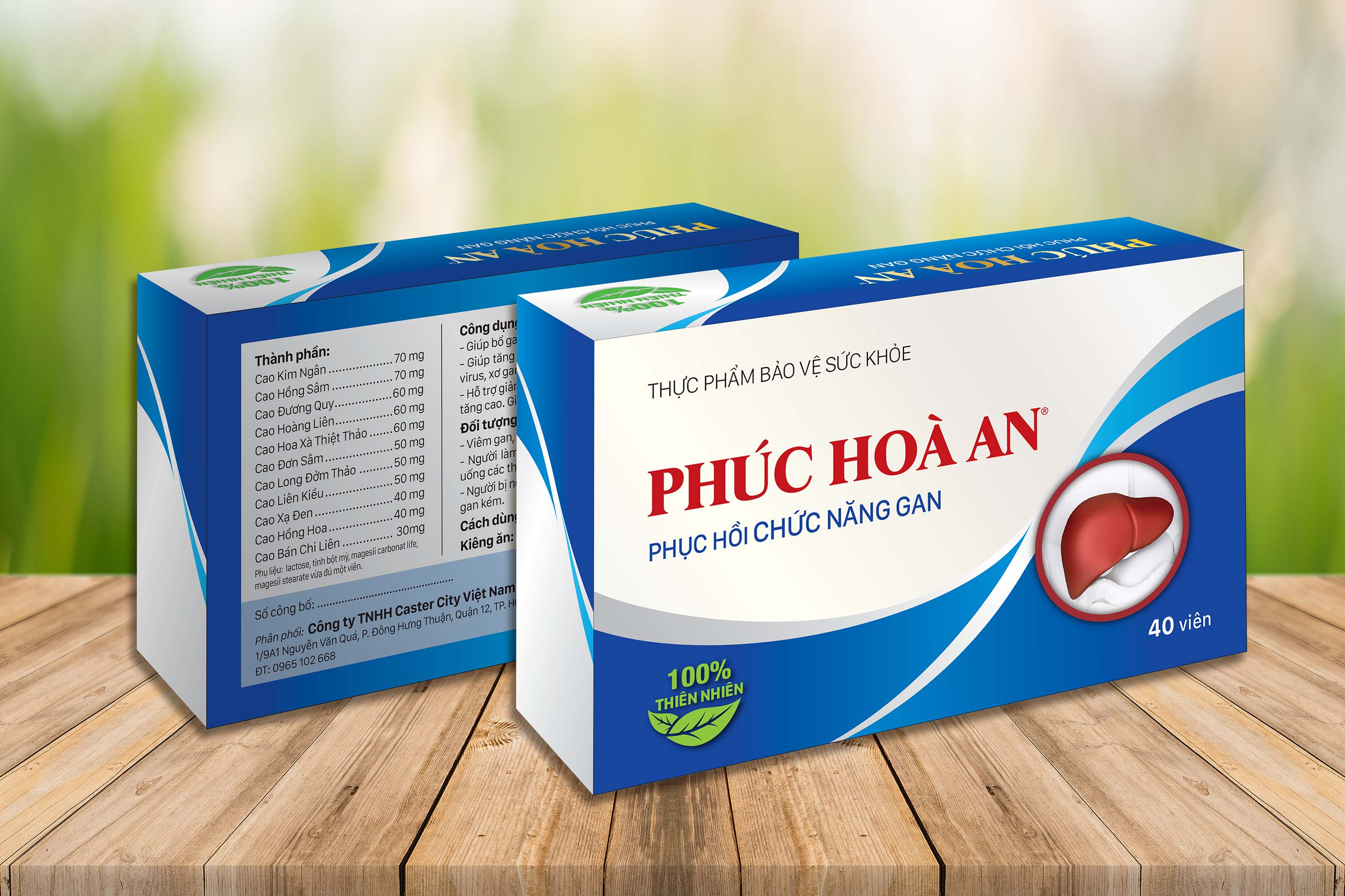 PHÚC HÒA AN – Phục Hồi Chức Năng Gan CÔNG DỤNG: – Giúp bổ Gan, bảo vệ Gan, tăng cường chức năng giải độc của Gan. – Giúp tăng cường chức năng Gan trong các trường hợp viêm Gan virus, xơ Gan, Gan nhiễm mỡ. – Hỗ trợ giảm các triệu chứng: vàng da, chán ăn, mệt mỏi, men Gan tăng cao. Giảm mẩn ngứa, dị ứng do chức năng Gan kém. ĐỐI TƯỢNG SỬ DỤNG: Các trường hợp: – Viêm Gan, xơ Gan, Gan nhiễm mỡ, men Gan tăng cao. – Người làm việc trong môi trường độc hại, uống nhiều bia rượu, uống các thuốc có tác dụng phụ gây hại cho Gan. – Người bị nóng trong, nhiệt miệng, mẩn ngứa, dị ứng do chức năng Gan kém. – Người bị K (ung thư do độc tố gây ra) CÁCH DÙNG: – Người bệnh: Ngày 15 viên, chia 3 lần. Sáng – Trưa – Chiều – Ngăn ngừa bệnh: Ngày 9 viên, chia 2 lần. Sáng – Chiều KIÊNG ĂN: Uống rượu, mỡ, thịt, thức ăn khó tiêu.