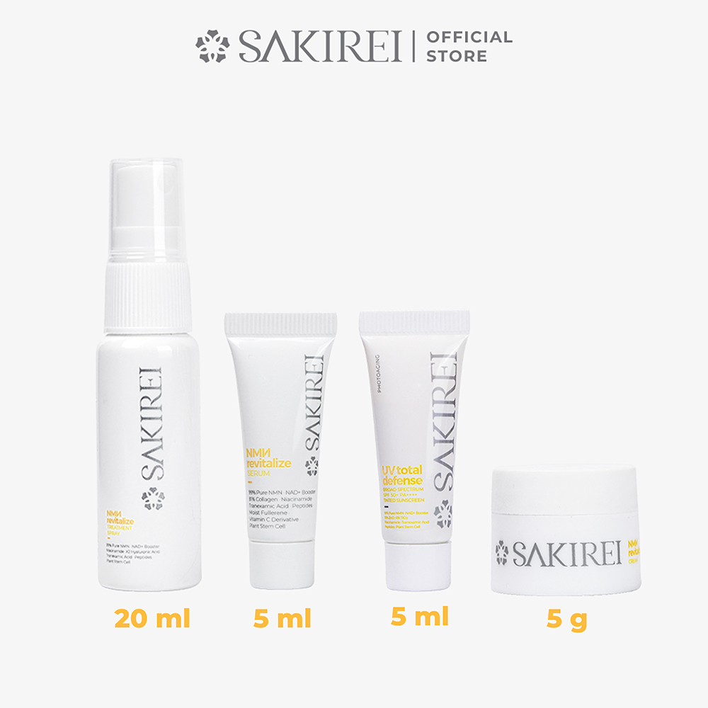 [Phiên bản trải nghiệm] Sakirei NMN Revitalize Cream 5g   Sakirei NMN Revitalize Cream với công thức chứa NMN, tế bào thực vật, Tranexamic Acid, Niacinamide,... có tác dụng dưỡng da toàn diện như cấp ẩm, dưỡng sáng, giảm thâm sạm, khắc phục các dấu hiệu lão hóa.   Thương hiệu: SAKIREI Xuất xứ: Nhật Bản Quy cách: Hũ 5g NSX: In trên bao bì HSD: 09-06-2026     > CÔNG DỤNG • Phức hợp NMN, tế bào gốc thực vật, Niacinamide giúp cấp ẩm phục hồi tổn thương DNA, tăng cường cơ chế tăng sinh tế bào mới • Làm sáng, giảm nám, thâm sạm loại bỏ sắc tố, ngăn sự tích tụ melanin • Cải thiện độ đàn hồi và tăng độ ẩm cho da, chống sự mất nước qua biểu bì • Tái tạo và phục hồi lượng nước tự nhiên, tạo thành mạng lưới giữ nước bên dưới da • Làm giảm thiểu nếp nhăn nông và sâu giúp da căng bóng, săn chắc • Làm dịu da   > THÀNH PHẦN CHÍNH • Nicotinamide Mononucleotide • Tranexamic Acid • Niacinamide • Squalane • Phytic Acid • Ceramide • Peptide (Decapeptide - 4; Oligopeptide - 41; Oligopeptide - 24) • Tocopherol • Mallus Domestica Fruit Cell Culture Extract • Daucus Carota Sativa Root Cell Culture Lysate   > ĐỐI TƯỢNG SỬ DỤNG Sử dụng cho mọi loại da.   > HƯỚNG DẪN SỬ DỤNG • Dùng 2 lần mỗi ngày, sử dụng trước khi thoa kem chống nắng vào ban ngày. • Kết hợp với tinh chất tái tạo và phục hồi năng lượng tế bào để mang lại hiệu quả tối ưu nhất.   > HƯỚNG DẪN BẢO QUẢN • Bảo quản sản phẩm ở nơi khô ráo, thoáng mát. • Tránh nơi có nhiệt độ cao và ánh nắng trực tiếp.   > VỀ THƯƠNG HIỆU Sakirei là thương hiệu đến từ Nhật Bản chuyên cung cấp các giải pháp trẻ khỏe toàn diện từ trong ra ngoài bằng các sản phẩm thực phẩm bảo vệ sức khỏe và dược mỹ phẩm chăm sóc sắc đẹp. Thương hiệu tập trung khai thác tối ưu hiệu quả NMN - hoạt chất nằm trong công trình nghiên cứu mang tính thành tựu của nhân loại với khả năng đảo ngược lão hóa, kéo dài tuổi thọ. Ngoài ra, trong công thức điều chế các sản phẩm của Sakirei, đội ngũ chuyên gia hàng đầu thế giới kết hợp đồng thời các thành phần, hoạt chất ưu việt và ứng dụng công nghệ khoa học hiện đại nhằm đáp ứng các nhu cầu và tình trạng khác nhau của khách hàng.