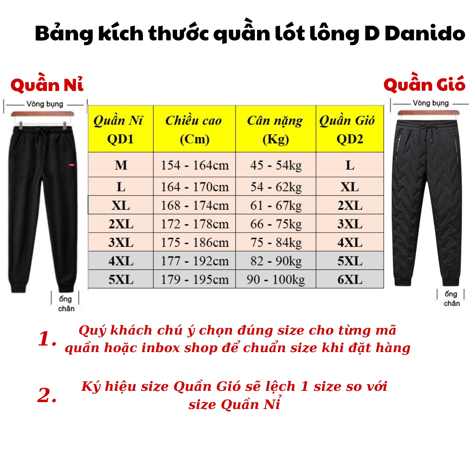 1. Quần Gió Lót Lông QD2 – Ấm Áp & Đa Năng Thông tin sản phẩm • Chất liệu: 3 lớp cao cấp (Vải dù chống nước, mút cách nhiệt, lông cừu nhân tạo). • Kích thước: Size L – 4XL (phù hợp từ 45kg đến 95kg). • Màu sắc: Đen, Xám. • Ưu điểm nổi bật: o Khả năng chống nước: Vải ngoài trượt nước hiệu quả, giúp bạn tự tin trong những ngày mưa phùn. o Giữ ấm tối ưu: Lớp lông cừu mềm mại, không bết dính, mang lại cảm giác ấm áp mà vẫn thông thoáng. o Thiết kế hiện đại: Dáng quần jogger gọn gàng, lưng thun co giãn, dây rút chắc chắn và túi có khóa kéo tiện lợi. o Dễ phối đồ: Thích hợp cho nhiều phong cách từ công sở đến dạo phố. o Unisex: Dành cho cả nam và nữ, phù hợp nhiều độ tuổi.