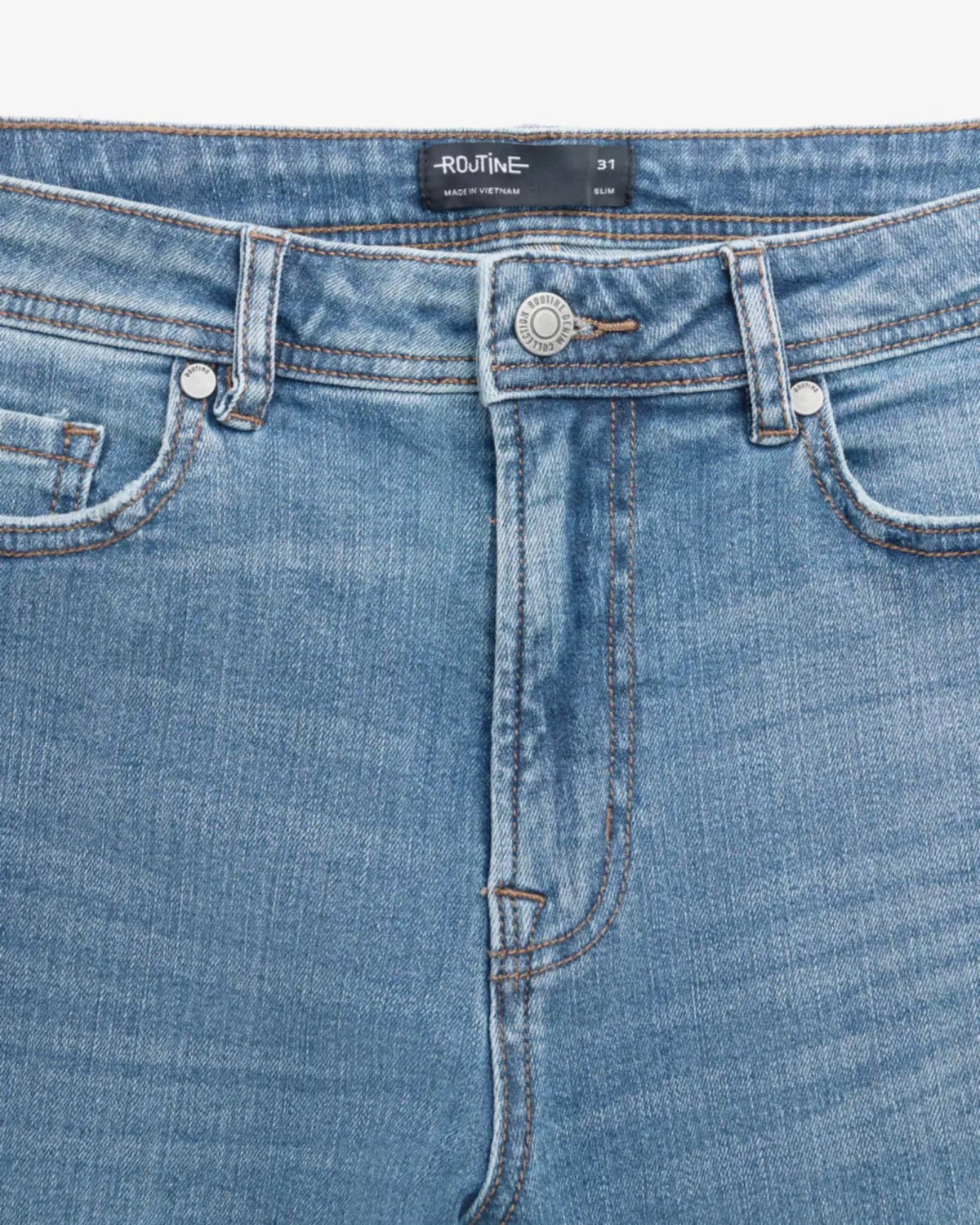 Quần Jean Nam ROUTINE Ống Ôm Xanh Trơn Cotton Spandex Form Slim - 10S24DPA004R1 | ROUTINE CÀ MAU ĐẶC ĐIỂM NỔI BẬT Nhóm sản phẩm Quần Jean Form dáng Slim Giới tính Nam Chất liệu