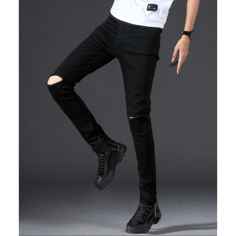 Thiết kế Jean đen rách gối cao cấp phong cách đường may tỉ mỉ. Quần thiết kế form vừa vặn giúp tôn được đường nét phong cách của các tính đồ yêu phong cách đường