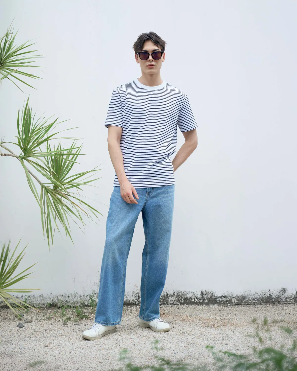 Quần jean / Quần denim nam màu xanh ống suông . Form Straight cropped - ROUTINE 10F24DPA043 | LASTORE MENSWEAR Đặc điểm nổi bật Form : Straight Cropped Fabric : Denim Gender: Nam Sản phẩm