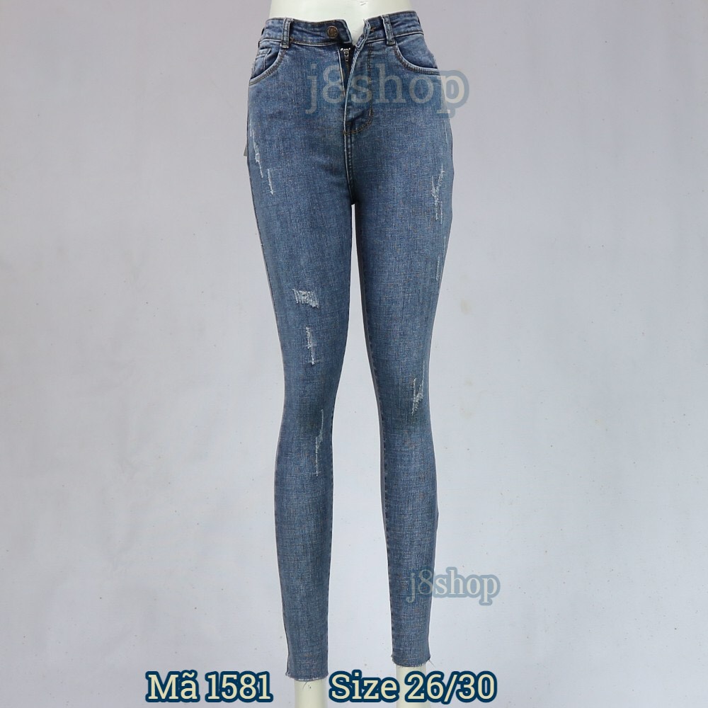Quần Jean Nữ Lưng Cao Có Cúp Ngang Cào Xước Tua Lai Mã 1581
