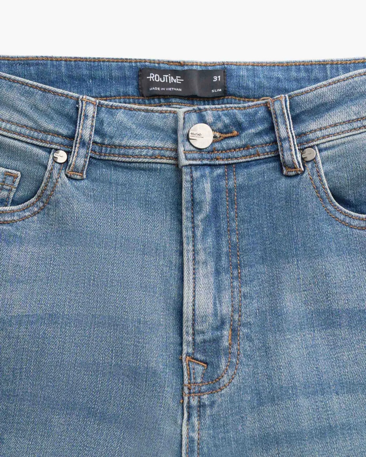 Quần Jean Nam ROUTINE Ống Ôm Xanh Trơn Cotton Spandex Form Slim - 10S24DPA004R1 | ROUTINE CÀ MAU ĐẶC ĐIỂM NỔI BẬT Nhóm sản phẩm Quần Jean Form dáng Slim Giới tính Nam Chất liệu