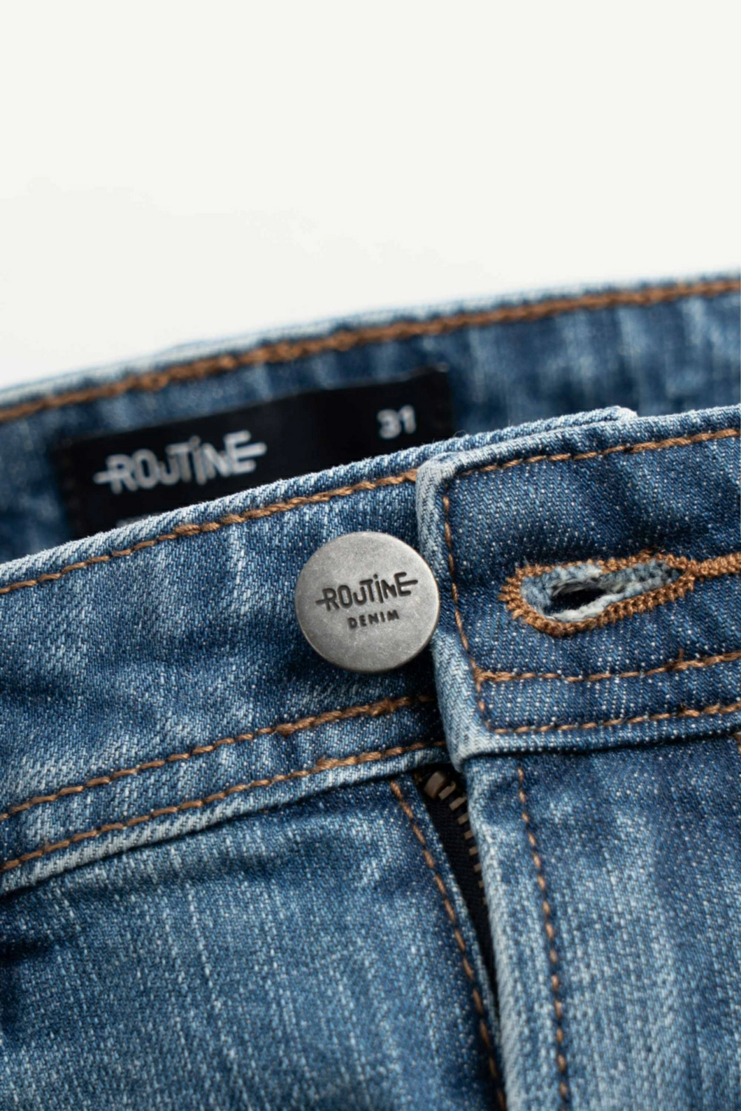 Quần Jean Nam ROUTINE Ống Ôm Xanh Trơn Cotton Spandex Form Slim - 10S24DPA004R1 | ROUTINE CÀ MAU ĐẶC ĐIỂM NỔI BẬT Nhóm sản phẩm Quần Jean Form dáng Slim Giới tính Nam Chất liệu
