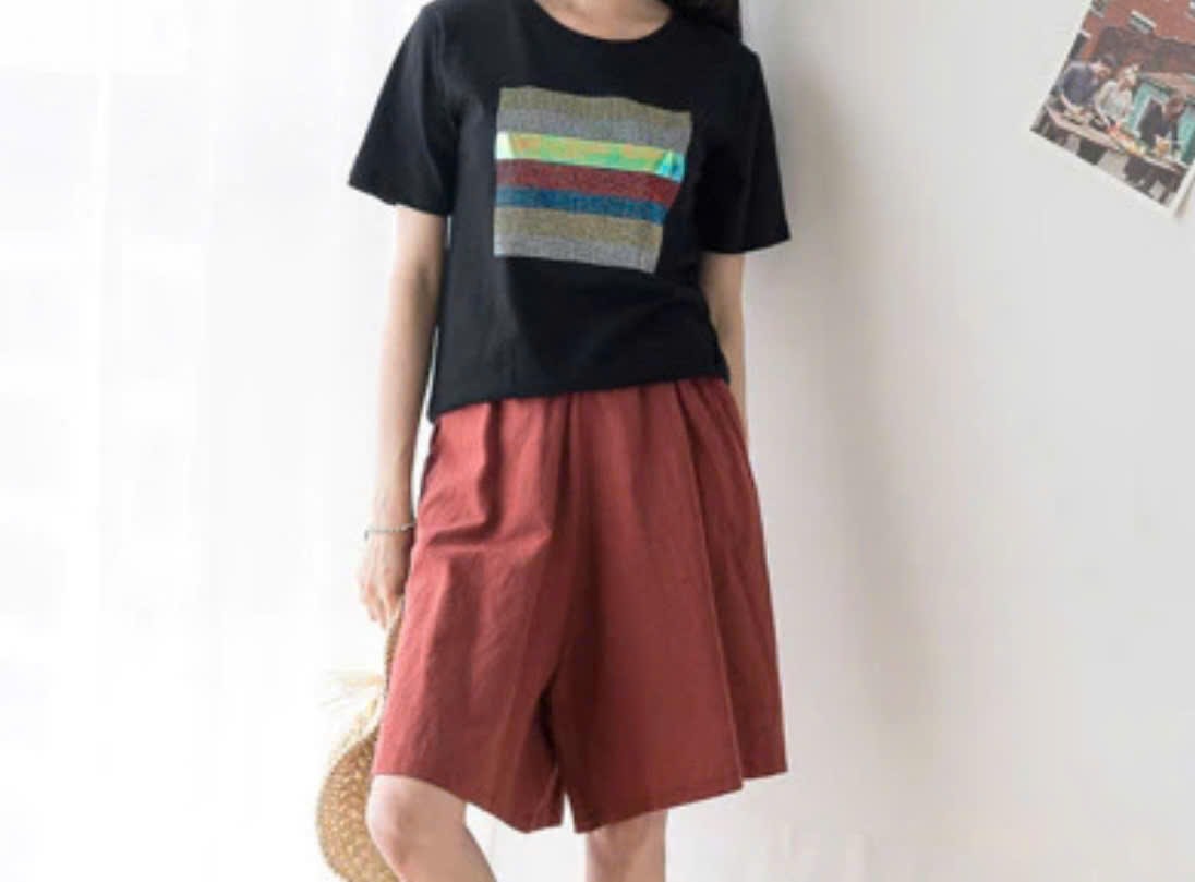 Kiểu dáng quần ngắn shorts Bảng lưng 4cm, lưng thun phía sau Cài bằng khoá cài và dây khoá kéo phía trước Túi hai bên CHẤT LIỆU Chất liệu chính: Polyester Satin Nghệ nhân: Yến,