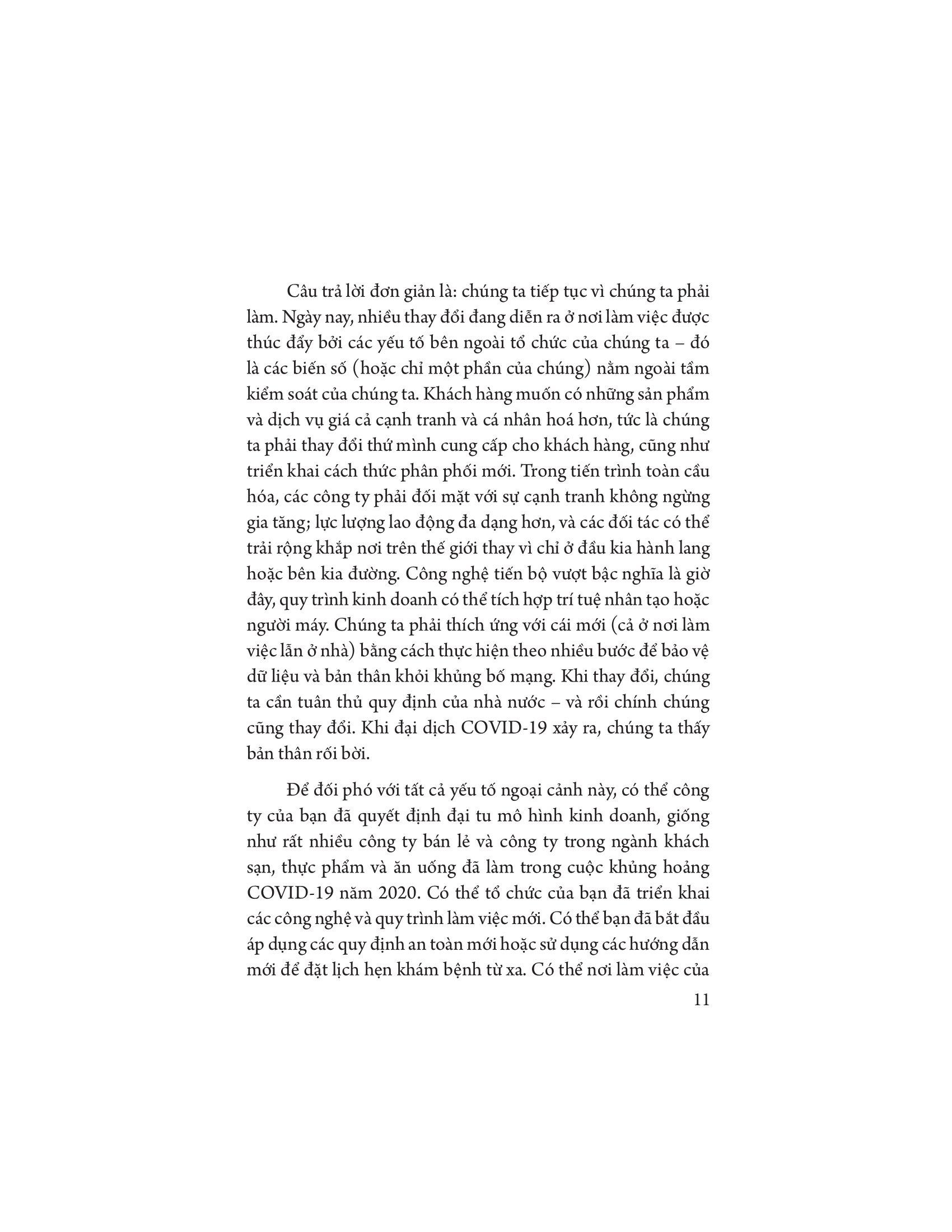 Quản Lí Quy Trình Và Con Người Để Thay Đổi Thành Công Về tác giả Kathryn Zukof có bằng Tiến sĩ về tâm lí xã hội và bằng Thạc sĩ quản trị kinh doanh về tiếp thị. Hiện bà đã có hơn 30 năm kinh nghiệm làm việc và giảng dạy trong lĩnh vực học tập và phát triển tổ chức. Trước đó, bà giữ vai trò xây dựng quan hệ với khách hàng, phát triển sản phẩm và tiếp thị trong lĩnh vực dịch vụ công nghệ. Về cuốn sách Quản Lí Quy Trình Và Con Người Để Thay Đổi Thành Công Trong công việc, và có khi cả trong đời sống cá nhân, chúng ta đều nghe người khác nói rằng chỉ có sự thay đổi là bất biến. Chúng ta đang sống trong một thế giới thiên biến vô cùng, được đặc trưng bởi sự biến động, không thể lường trước. Song rất nhiều lần, những nỗ lực thay đổi của chúng ta lại không đạt được mục tiêu mong muốn. Khách hàng rời đi, có khi còn nhiều hơn trước. Năng suất vẫn như cũ, thậm chí còn sụt giảm. Chúng ta cố gắng tìm hiểu chuyện gì đã xảy ra, m.ình đã bỏ qua điều gì, và chúng ta được bảo rằng kết quả không như mong muốn cũng là chuyện thường tình. Đôi khi những thay đổi ấy có hiệu quả, đôi khi lại không. Vậy tại sao chúng ta vẫn tiếp tục thay đổi? Câu trả lời đơn giản là: chúng ta tiếp tục vì chúng ta phải làm. Cuốn sách đưa ra những phương pháp tiếp cận và công cụ để triển khai, tiếp nhận và quản lí sự thay đổi một cách hiệu quả. Cụ thể, tác giả chỉ ra rằng cần quản lí quy trình (mặt cứng) và con người (mặt mềm) của sự thay đổi và tìm ra điểm cân bằng tốt nhất giữa hai bên. Khi tích hợp cả hai, các tổ chức có thể quản lí sự thay đổi thành công và đạt được kết quả mong muốn. Đây chắc chắn là một cuốn cẩm nang hữu ích về điều hành, quản lí doanh nghiệp mà bất cứ doanh nhân nào cũng nên đọc một lần trong đời.