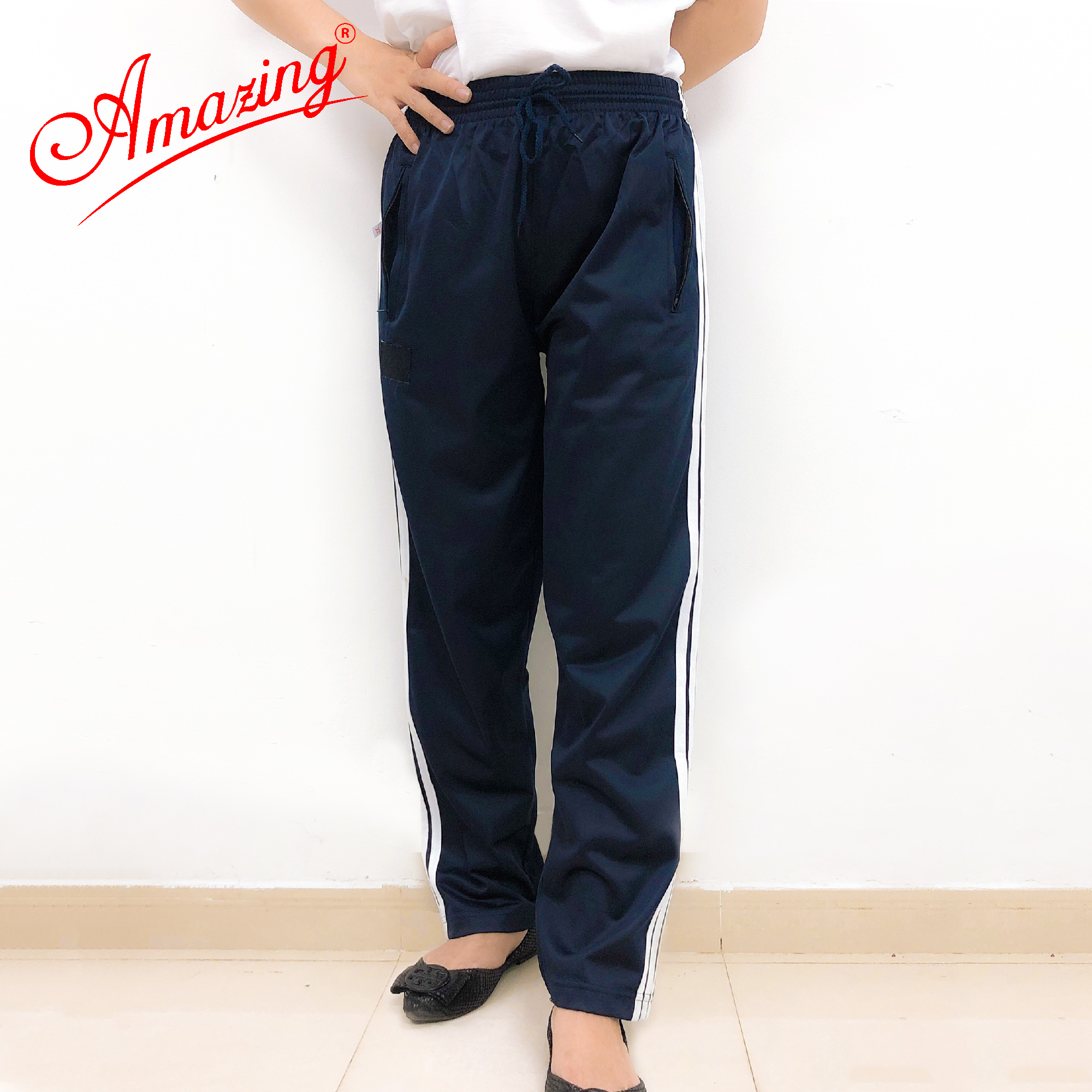 ✨Quần tập thể dục cho nữ hiệu Amazing, 3 sọc trắng, đồ thể thao unisex, vải thun cào, size từ 15kg đến 110kg