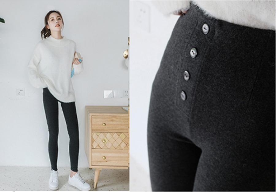 Quần Tregging Legging Cạp Cao Đính 5 Cúc - Hàn Quốc