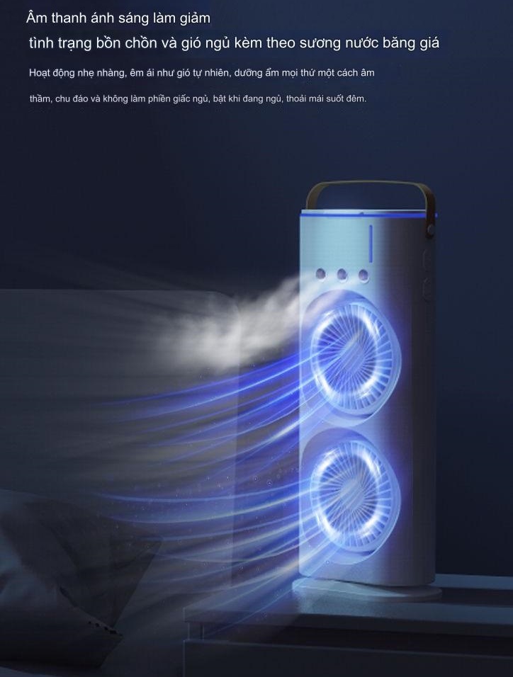 Quạt điều hoà hơi nước mini cool fan, quạt hơi nước làm mát phun sương để bàn 3 chế độ gió, dung tích bình lớn tích hợp đèn led, quạt phun sương mini để bàn