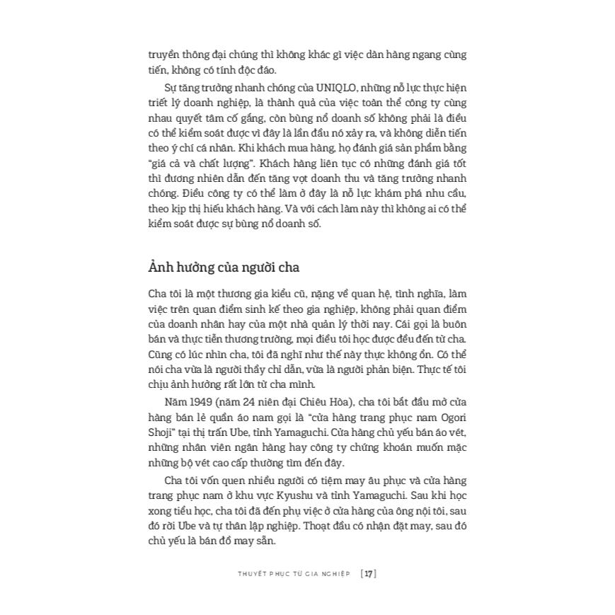 Cuốn sách cũng chỉ ra điểm yếu của các doanh nghiệp Nhật Bản thua trên thương trường thế giới vì đã không phân tích những nguyên nhân dẫn đến thất bại nhỏ. Ông Tadashi Yanai nhấn mạnh sự quan trọng của việc phân tích nguyên nhân thất bại, từ đó suy nghĩ thấu đáo cho chiến lược tiếp theo.