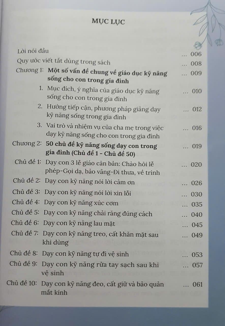 Nhà phát hành : nhà sách hồng ân năm : 2025 trang : 267 tác giả : bùi văn trực nhà xuất bản : đại học quốc gia hà nội NỘI DUNG Tập 1 giới thiệu các vấn đề chung khi dạy kỹ năng sống cho trẻ tại gia đình và 50 kỹ năng đầu tiên ( từ chủ đề 1 đến kỹ năng 50 )