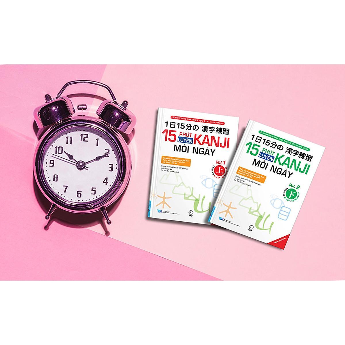 15 Phút luyện Kanji mỗi ngàylà bộ sách cung cấp bộ công cụ luyện tập chữ Kanji được chia theo cấp độ, tương ứng với các cấp độ của kỳ thi JLPT. Bộ sách gồm 4 tập với 2 cấp độ: Sơ cấp – Sơ trung cấp và Trung cấp.