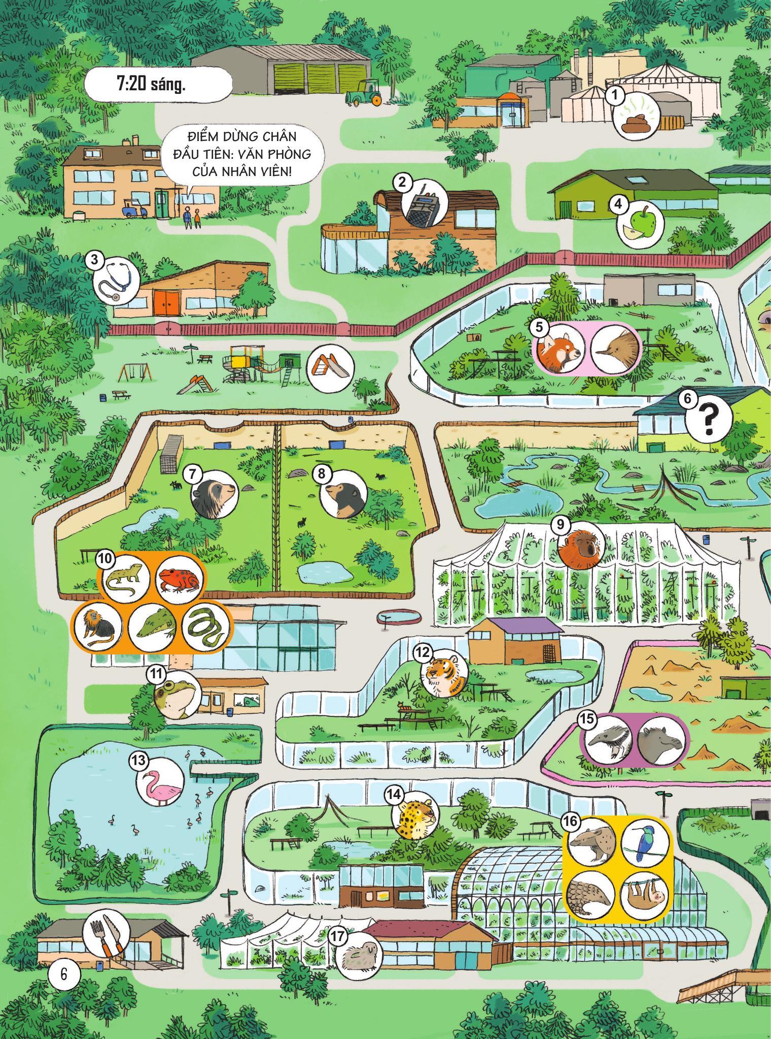 24 Giờ Trong Sở Thú Bạn sẽ được tìm hiểu điều gì xảy ra trong sở thú từ lúc bình minh cho đến khi màn đêm buông xuống. Người ta kiểm tra sức khỏe cho một con trăn khổng lồ ra sao, cách sở thú chuẩn bị cho sự kiện giới thiệu một động vật mới đến thế nào, điều gì sẽ xảy ra nếu một con vật bị mất tích? Và nhất là: Làm thế nào để xử lý hàng tấn chất thải động vật mỗi ngày? Quả thật, công việc tại sở thú chẳng hề đơn giản như bạn nghĩ đâu! Qua từng giờ đồng hồ, bạn đọc sẽ được tìm hiểu vô vàn những bí mật nơi "hậu trường" của sở thú đấy. Nhanh lên nào, chúng m.ình cùng khám phá ngay thôi! Sách khoa học theo định dạng truyện tranh, đưa các bạn nhỏ theo chân những nhân viên sở thú khám phá hàng trăm loài động vật trong sở thú