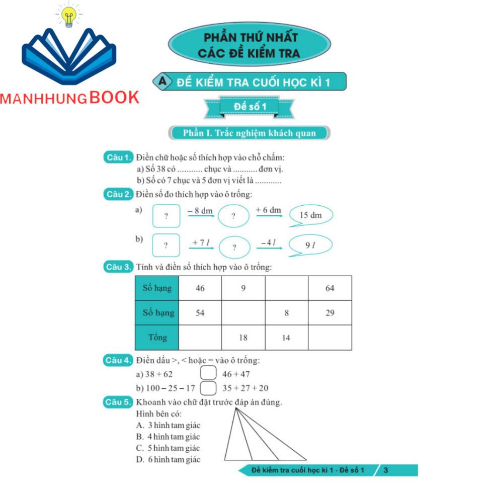 Các bài trong mỗi đề được phân chia theo tỉ lệ hợp lý giữa 3 mạch kiến thức trong chương trình môn Toán: Số và phép tính, Hình Học và đo lường, Xác xuất thống kê