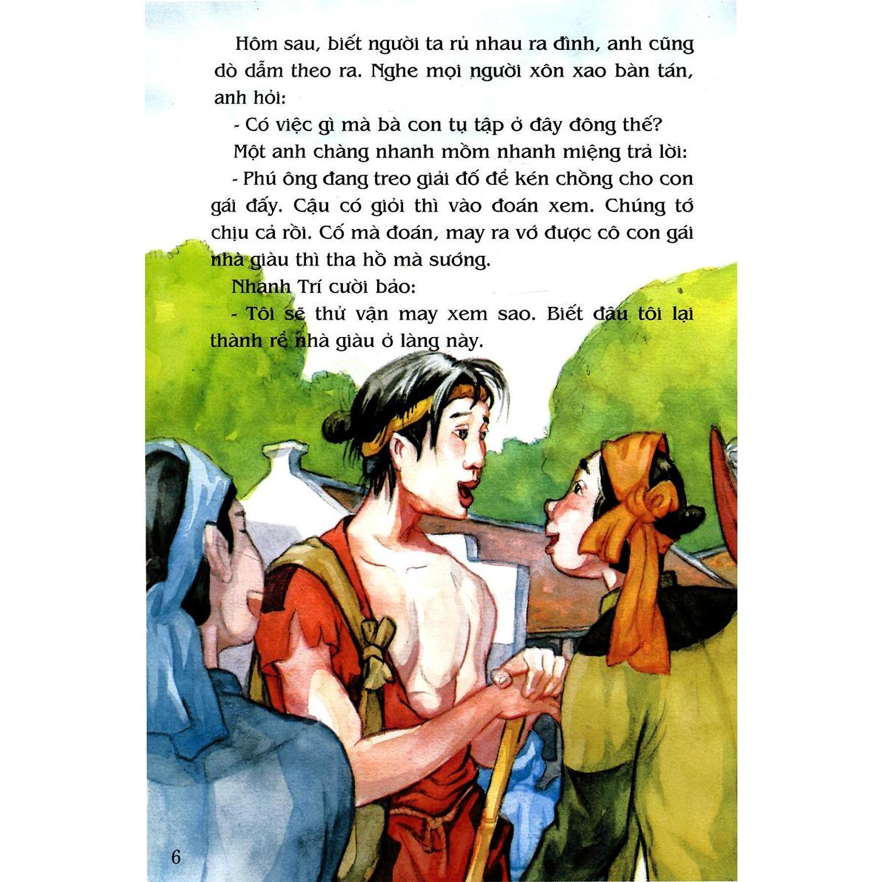 Tranh Truyện Dân Gian Việt Nam: Anh Chàng Nhanh Trí “Trời ơi, mắt mũi để đâu mà lại lặn xuống ao thế hả con?” Tiếc quá, con vừa vồ trượt một con cá to mẹ ạ!” Thực tình thì anh con rể ấy bị thông manh, anh không nhìn thấy đường nên bị ngã xuống ao! Nhưng nhờ vào sự nhanh trí và tài ứng đối mà hết lần này qua lần khác anh đã “qua mặt” được bố mẹ vợ và dân làng. Cũng chính cái tài này trước đó đã giúp anh lấy được con gái phú ông làm vợ… Liệu cuối cùng bí mật của anh có bị phát hiện không? Mời các em cùng đọc truyện! Những câu chuyện dân gian giúp các em giàu thêm mơ ước, biết sống đẹp và trân trọng truyền thống cha ông. Cùng tìm đọc hơn 100 cuốn Tranh truyện dân gian Việt Nam do NXB Kim Đồng ấn hành!