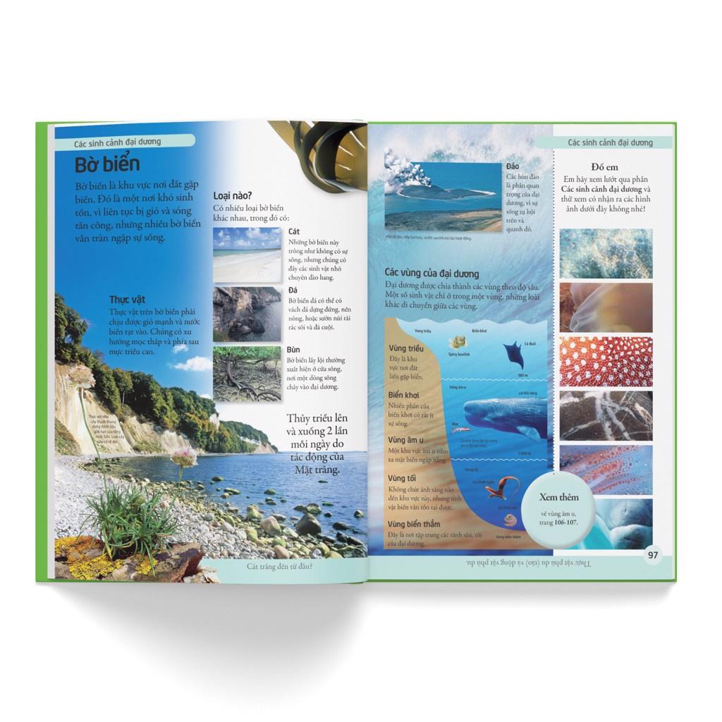 Với các hình minh họa trực quan sinh động, bắt mắt, cuốn sách cung cấp một lượng kiến thức phong phú, súc tích, dễ hiểu, cùng những câu hỏi vui, mẩu thông tin thú vị về thế giới xung quanh. Em sẽ được biết đến cách các loài động thực vật sinh tồn thế nào ở mọi nơi trên Trái đất, từ những hoang mạc khô cằn, tới những cánh rừng mưa tươi tốt.