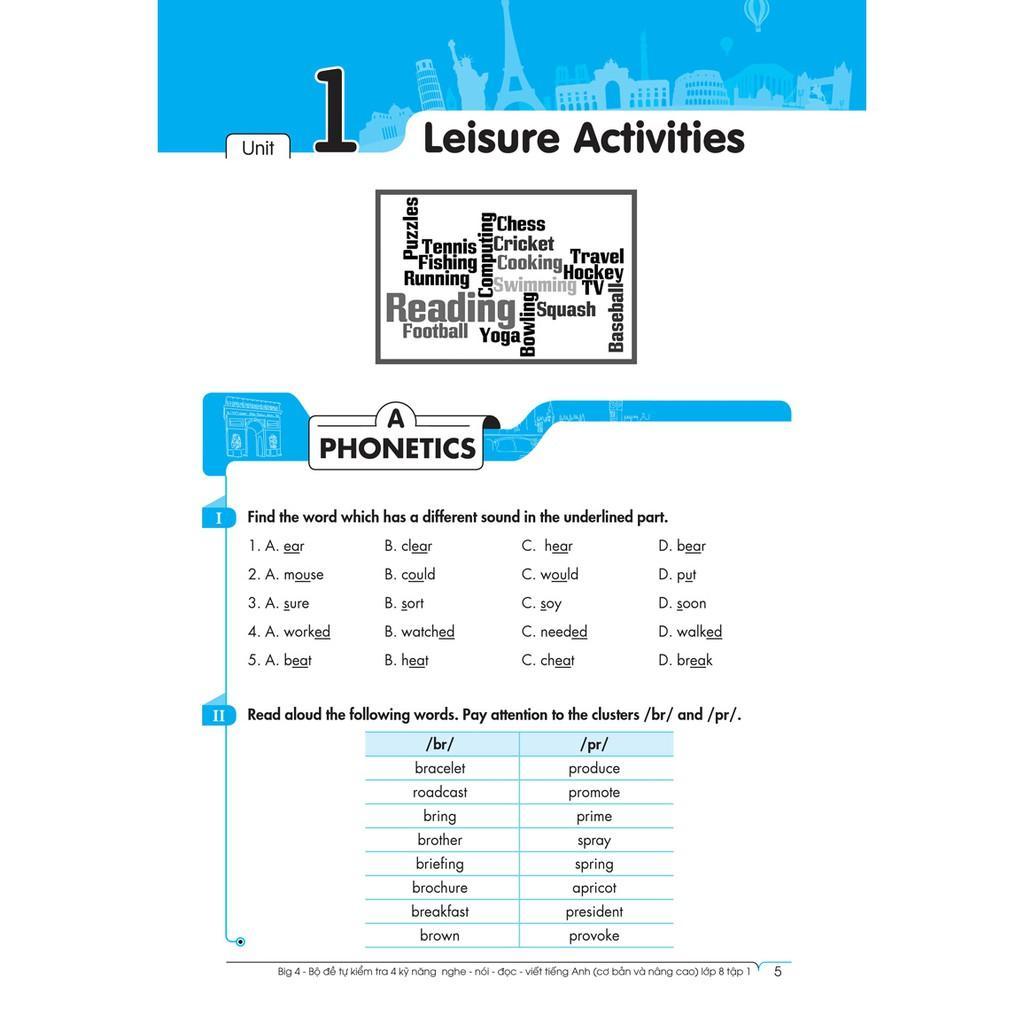 Big 4 Bộ Đề Tự Kiểm Tra 4 Kỹ Năng Nghe – Nói – Đọc – Viết (Cơ Bản và Nâng Cao) Tiếng Anh Lớp 8 Tập 1 viết theo chuẩn khung chương trình mới của Bộ Giáo Dục và Đào Tạo giúp các em học sinh lớp 8 củng cố và phát triển toàn diện các kỹ năng: Nghe – Nói – Đọc – Viết Tiếng Anh.