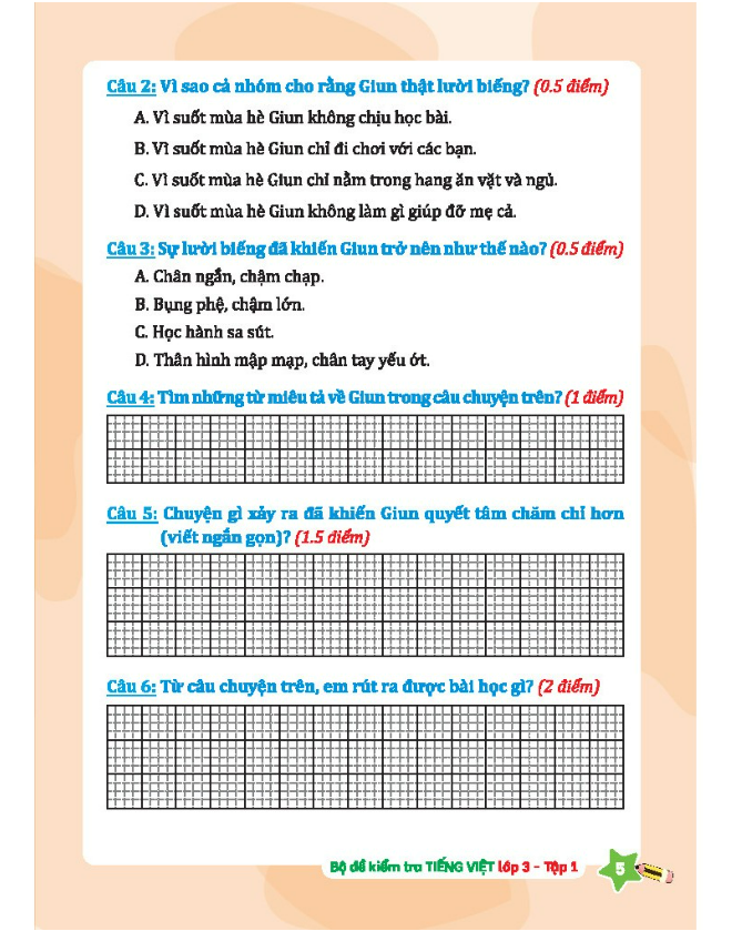 Cuốn sách “Đề kiểm tra Tiếng Anh 4” là một tài liệu cần thiết cho các em trong việc ôn tập và củng cố kiến thức để chuẩn bị cho các bài kiểm tra đánh
