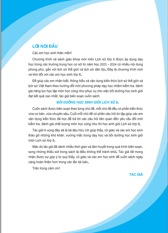 Để giúp các em học sinh có tài liệu hệ thống kiến thức, chúng tôi biên soạn cuốn ''BỒI DƯỠNG HỌC SINH GIỎI LỊCH SỬ 8'' nhằm phục vụ tốt cho việc học tập và ôn luyện thi môn Lịch sử, đáp ứng yêu cầu đổi mới kiểm tra, đánh giá chất lượng môn học cũng như đạt kết quả tốt nhất trong các kỳ thi học sinh giỏi.