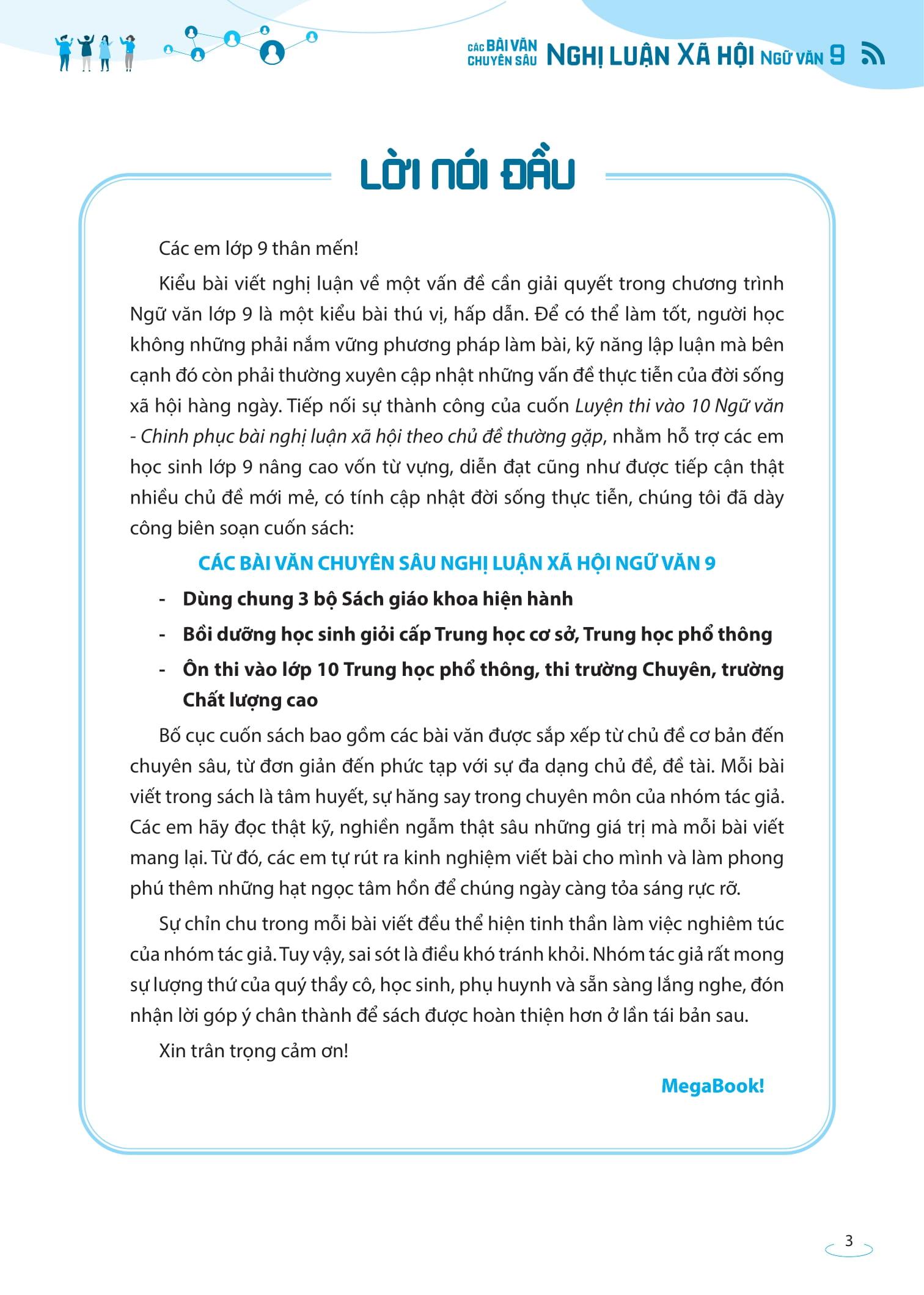 - Bố cục khoa học, nâng cao tư duy theo lộ trình: Các bài văn được sắp xếp từ chủ đề cơ bản đến chuyên sâu, từ đơn giản đến phức tạp, giúp học sinh từng bước làm quen và nâng cao kỹ năng viết bài nghị luận xã hội một cách có hệ thống.